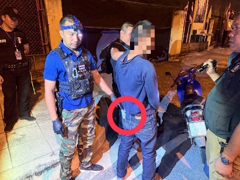 วันที่ 18 กุมภาพันธ์ 2568เวลาประมาณ 21.30 น.นามเจ้าพนักงานตำรวจภายใต้อำนวยการและสั่งการของ พ.ต.อ.ถาวร ผลกล้า ผกก.สภ.โกตาบารู,พ.ต.ท.วิรัตน์ จันทรัตนะ รอง ผกก.สส.สภ.โกตาบารู, พ.ต.ต.มานิตย์ คงเกลี้ยง สว.สส.สภ.โกตาบารู สั่งการให้ ร.ต.อ.ถนัด ไชยพูน,ด.ต.พิสัณห์ อินมาก, ด.ต.สรกานต์ ขุนเกษม, จ.ส.ต.ศิวนาถ นิ่มอนงค์, ส.ต.อ.สิทธิราช แขกเพ็ง, ส.ต.อ.จตุพล บุญรอด และ ส.ต.อ.ศรายุทธ นิลมาศนามเจ้าหน้าที่ทหารพราน 4111 ภายใต้อำนวยการและสั่งการของ ร.ท.จตุรงค์ ส่งแสง ผบ.ร้อย.ทพ.4111 สั่งการให้ จ.ส.อ.ธัญกร อินโท และ จ.ส.อ.อรรถวิทย์ ไชยจำนงค์ ได้ร่วมกันจับกุมตัว นายซันนูซี สะยะมิง อายุ 33 ปี ( 1 9506 00115 72 1 ) ที่อยู่ 7/1 ม.5 ต.บันนังสาเรง อ.เมืองยะลา จว.ยะลา สถานที่จับกุม บริเวณหน้าจุดตรวจกองร้อยทหารพราน 4111 บนถนนสายโกตา-ไม้แก่น ม.3 ต.บาโงย อ.รามัน จว.ยะลาพร้อมของกลาง ของกลางรายการที่ 1 ยาเสพติดให้โทษประเภท 1 (ยาบ้า) ชนิดเม็ดกลมแบน บรรจุอยู่ภายในถุงพลาสติก ชนิดซิปล็อค จำนวน 5 ถุง แบ่งเป็นถุงสีครามแถบสีส้ม จำนวน 4 ถุง และถุงสีชมพู ประทับตัวอักษร A สีขาวจำนวน 1 ถุง แต่ละถุงบรรจุยาบ้า จำนวน 200 เม็ด แยกเป็นยาบ้าชนิดเม็ดสีแดงจำนวน 198 เม็ด สีเขียวจำนวน 2 เม็ด น้ำหนักรวมประมาณ 16 กรัม (ยาบ้าชนิดเม็ดสีแดง จำนวน 990 เม็ด ยาบ้าชนิดเม็ดสีเขียว จำนวน 10 เม็ด) รวมยาบ้าทั้งหมด 1,000 เม็ด น้ำหนักรวมประมาณ 80 กรัม ของกลางรายการที่ 2 กระดาษสา สีขาว ประทับตัวอักษร A สีเขียวด้านหนึ่ง จำนวน 1 แผ่นของกลางรายการที่ 3 ถุงพัสดุ ชนิดพลาสติก สีขาว จำนวน 1 ถุงตำแหน่งที่พบของกลาง ของกลางรายการที่ 1 ห่อด้วยของกลางรายการที่ 2 และบรรจุอยู่ในของกลางรายการที่ 3 ซุกซ่อนอยู่ในกระเป๋ากางเกงด้านหลังข้างซ้ายของผู้ต้องหาที่สวมใส่อยู่ ขณะตรวจค้นจับกุม ในที่เกิดเหตุโดยกล่าวหาว่า จำหน่ายยาเสพติดให้โทษประเภท 1 (เมทแอมเฟตามีนหรือยาบ้า) โดยการมีไว้เพื่อจำหน่ายโดยผิดกฎหมาย พร้อมทั้งได้บันทึกการยึดทรัพย์สินเพื่อตรวจสอบ ตามประมวลกฎหมายยาเสพติด 1 รายการ1.รถจักรยานยนต์ ยี่ห้อ ฮอนด้า รุ่น เวฟเอส 125 สี น้ำเงิน-ดำ หมาเลขทะเบียน กยม 600 ยะลา หมายเลขตัวถัง NF125MD-0081963 หมายเลขเครื่อง NF125MDE-0081963 จำนวน 1 คัน ราคาประมาณ 48,000 บาท