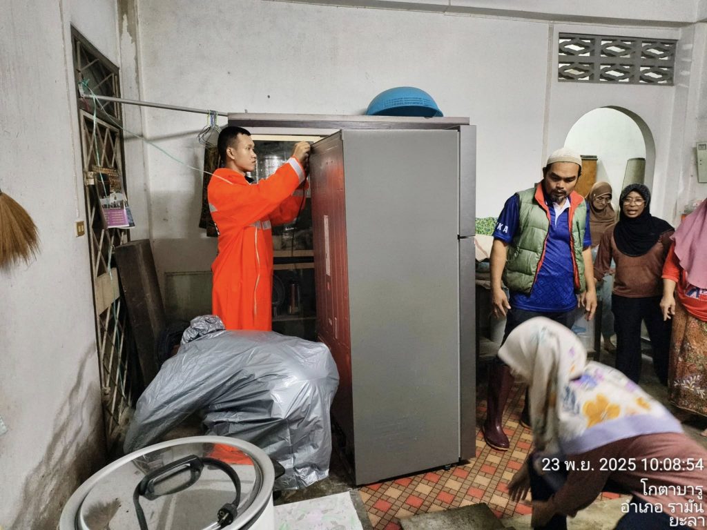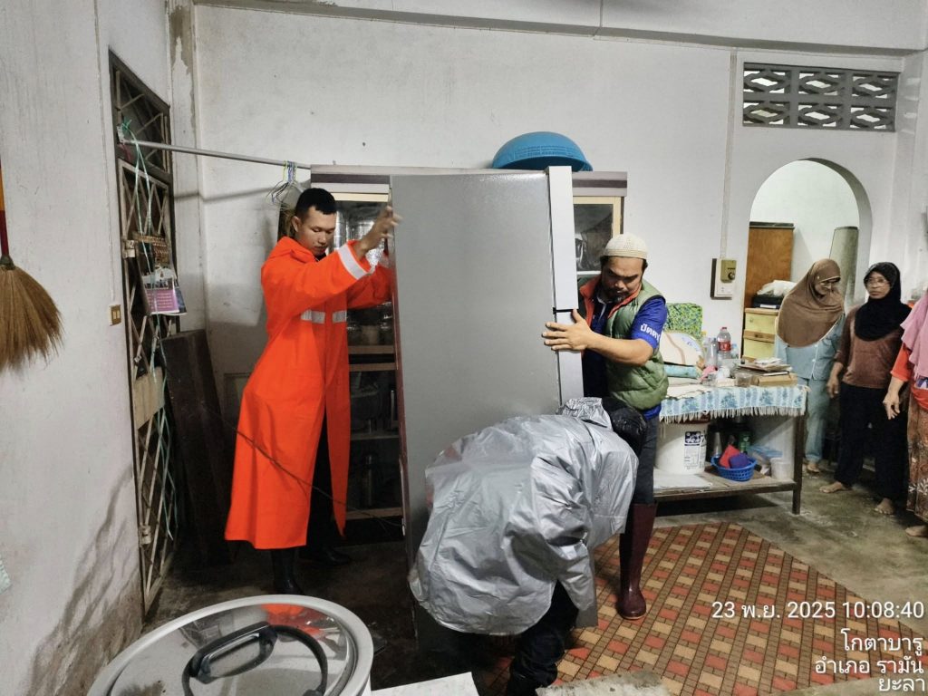 ชุด ตชส. ช่วยเหลือประชาชน 24 พฤศจิกายน 2568 โดย หัสซาน สะแลมะ / ไม่มีหมวดหมู่,งาน ป. (พ.ย.),งานอำนวยการ,งานอำนวยการ (พ.ย.) วันที่ 23 พ.ย.68.เวลา 10.00 น. ภายใต้อำนวยการของ พ.ต.อ.ถาวร ผลกล้า ผกก.สภ.โกตาบารู พ.ต.ท.วิรัตน์ จันทรัตนะ รอง ผกก.สส.สภ.โกตาบารู พ.ต.ท.ฉัตรพงศ์ คงเจริญ รอง ผกก.ป.สภ.โกตาบารู พ.ต.ท.ธนาเทพ วรรณกูล สวป.สภ.โกตาบารู มอบหมายให้ ร.ต.ท.อับดุลรอซะ มะสะนิง รอง สว.(ป.)สภ.โกตาบารู พร้อมชุด ตชส. และ ชป.จู่โจม ให้การช่วยเหลือประชาชนในพื้นที่ ขนของขึ้นที่สูง เนื่องจากในพื้นที่มีฝนตกหนักอย่างต่อเนื่อง ทำให้ปริมาณน้ำเพิ่มมากขึ้นตามลำดับ Facebook iconFacebookTwitter iconTwitterLINE iconLine