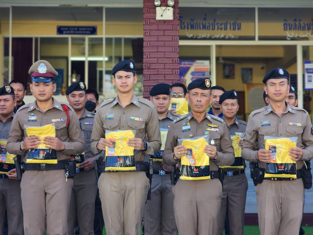 พร้อมข้าราชการตำรวจ ฝ่ายอำนวยการ ลงแถวประจำวัน เคารพธงชาติ กล่าวบทปลงใจ อุดมคติ คำสัตย์ปฏิญาน ตรวจสอบความพร้อมในการปฏิบัติหน้าที่และกำชับข้อราชการ พร้อมมอบเสื้อสีเหลือง ตราสัญลักษณ์ ฯ เพื่อแต่งกายลงแถวในทุกวันจันทร์ เพื่อการแต่งกายเฉลิมพระเกียรติพระบาทสมเด็จพระเจ้าอยู่หัว เนื่องในโอกาสมหามงคลเฉลิมพระชนมพรรษา 6 รอบ 28 ก.ค.2567
