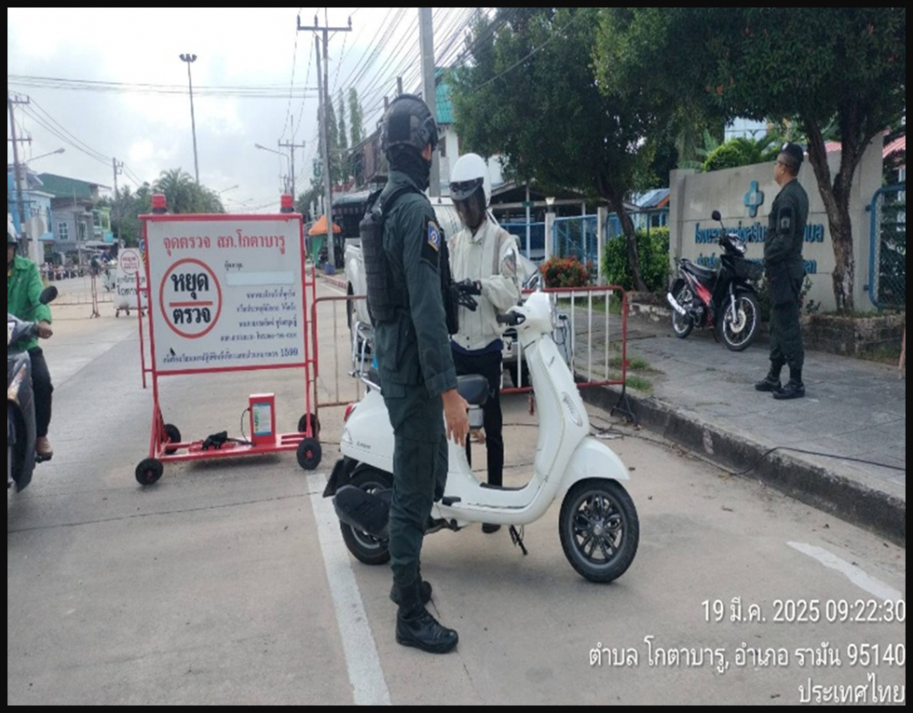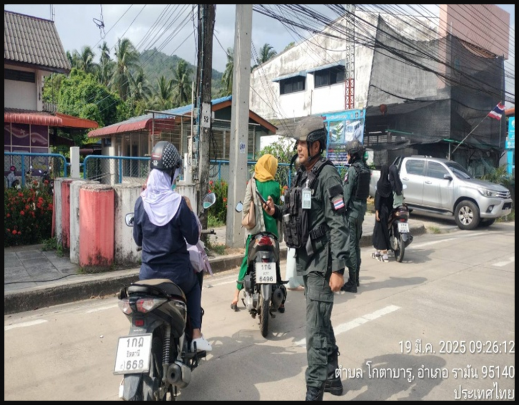 เมื่อวันที่ 19 มี.ค.68 เวลา 09.00 น. ภายใต้อำนวยการ พ.ต.อ.ถาวร ผลกล้า ผกก.สภ.โกตาบารู ,พ.ต.ท.ธนาเทพ วรรณกูล สวป.สภ.โกตาบารู สั่งการให้ ร.ต.ต.มนูญ ทองตราชู รอง สว(ป.)สภ. โกตาบารู (ร้อยเวร 20) พร้อม ชป.จู่โจม ตั้งจุดตรวจจุดตรวจ ตั้งจุดตรวจจุดสกัด เพื่อป้องการก่อเหตุในพื้นที่ ตรวจสอบบุคคลผ่านระบบ line bot