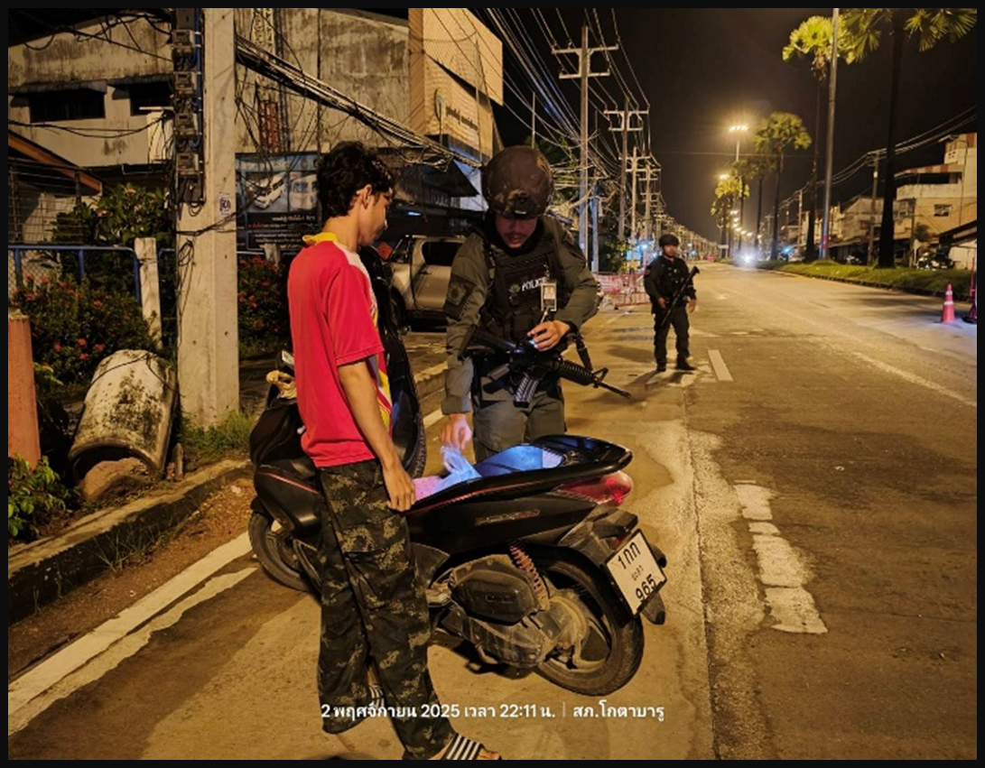 ตั้งจุดตรวจจุดสกัด 3 พฤศจิกายน 2568 โดย หัสซาน สะแลมะ / ไม่มีหมวดหมู่,งาน ป. (พ.ย.) เมื่อวันที่ 2 พ.ย.68 เวลา 21.30 น. ภายใต้อำนวยการ พ.ต.อ.ถาวร ผลกล้า ผกก.สภ.โกตาบารู พ.ต.ท.ฉัตรพงศ์ คงเจริญ รอง ผกก.ป.สภ.โกตาบารู,พ.ต.ท.ธนาเทพ วรรณกูล สวป.สภ.โกตาบารู สั่งการให้ ร.ต.ต.นพเนตร พรหมณี รอง สวป. สภ.โกตาบารู (ร้อยเวร 20) ตั้งจุดตรวจจุดสกัด ตามคำสั่ง มาตรการป้องกันเด็กนักเรียนและกลุ่มวัยรุ่นก่อเหตุทะเลาะวิวาทและการแข่งรถในทางสาธารณะ โดยเน้นความผิดเกี่ยวกับการพกพาอาวุธปืน วัตถุระเบิด เครื่องกระสุนปืน อาวุธมีด ดัดแปลงสภาพรถ(ท่อดัง)เพื่อลดอาชญากรรม และการรวมตัวของกลุ่มวัยรุ่นในเขตพื้นที่รับผิด Facebook iconFacebookTwitter iconTwitterLINE iconLine