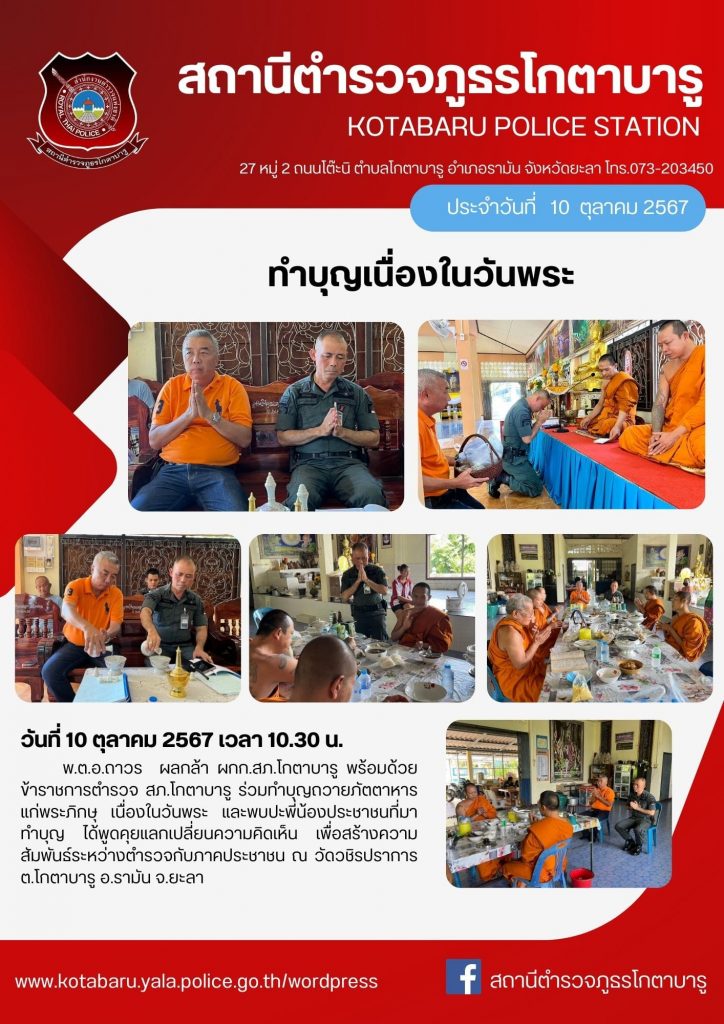 ทำบุญเนื่องในวันพระ 11 ตุลาคม 2567 โดย อัมรอน หะระตี / ข่าวภารกิจผู้บังคับบัญชา Facebook iconFacebookTwitter iconTwitterLINE iconLine