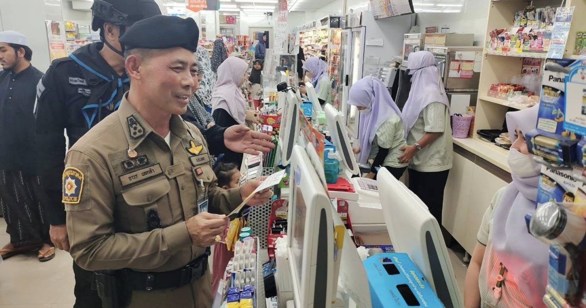 ร่วมกำลังเจ้าหน้าที่ 3 ฝ่าย ประกอบไปด้วย จนท.ตำรวจ จนท.ทหารพราน 4111 จนท.ฝ่ายปกครอง ผู้ใหญ่บ้าน ผรส.ตำบลโกตาบารู ตรวจเยี่ยม ดูความสงบเรียบร้อย ร้านค้าในพื้นที่ ได้แนะนำประชาสัมพันธ์แก่ผู้ประกอบการ พนักงาน มินิบิ๊กซี เซเว่น แม่ค้า ให้หมั่นสอดส่องดูสิ่งผิดปกติ และวัตถุต้องสงสัยภายในพื้นที่ร้านของตนเองอย่างสม่ำเสมอ หากพบเจอสิ่งผิดสังเกตุสามารถแจ้งเจ้าหน้าที่ ให้มาตรวจสอบได้ทันที และหากพบมีการลักขโมยเกิดขึ้นภายในร้าน ให้โทรแจ้งเจ้าหน้าที่ตำรวจ สภ.โกตาบารู ได้ตลอดเวลา