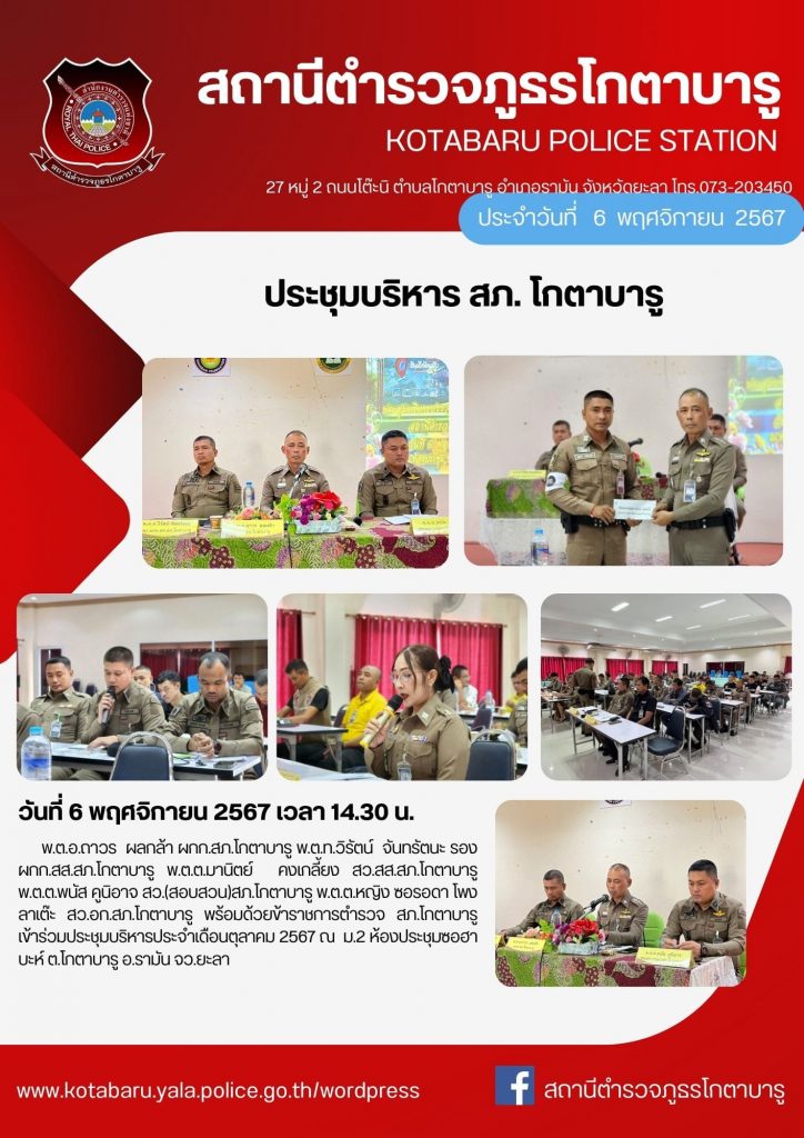 ประชุมบริหารสภ.โกตาบารู 7 พฤศจิกายน 2567 โดย อัมรอน หะระตี / ข่าวภารกิจผู้บังคับบัญชา Facebook iconFacebookTwitter iconTwitterLINE iconLine