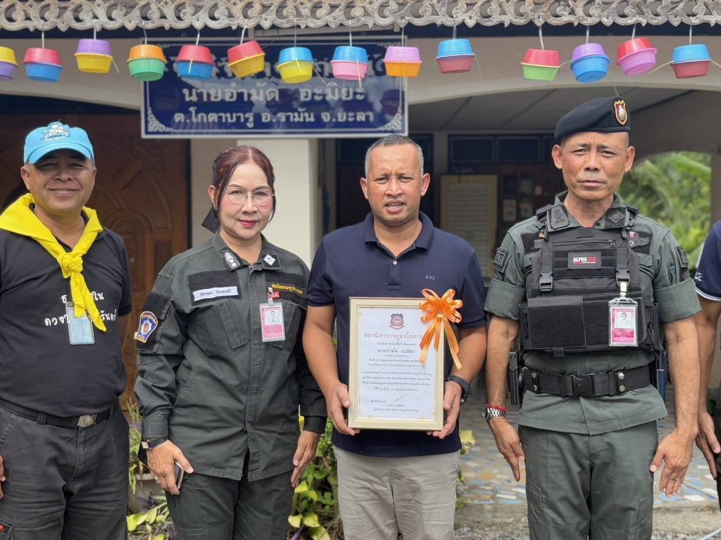 มอบเกียรติบัตรผู้ที่สนับสนุนกิจการงานตำรวจ 7 พฤศจิกายน 2568 โดย หัสซาน สะแลมะ / งานอำนวยการ,งานอำนวยการ (พ.ย.) วันที่ 7 พฤศจิกายน 2568 เวลา 09.50 น. พ.ต.อ.ถาวร ผลกล้า ผกก.สภ.โกตาบารู ว่าที่ พ.ต.ท.หญิงซอรอดา โพงลาเต๊ะ สว.อก.สภ.โกตาบารู พร้อมด้วยชุดจิตอาสา สภ.โกตาบารู มอบเกียรติบัตร ให้กับนายนายอำมัด อะมิยะ กำนันตำบลโกตาบารู และคณะกรรมการ กต.ตร.สภ.โกตาบารู ซึ่งเป็นผู้ที่สนับสนุนกิจการงาน ตำรวจตลอดมา พบปะพูดคุยแลกเปลี่ยนความคิดเห็นเพื่อสร้างความสัมพันธ์ระหว่างตำรวจกับผู้นำท้องที่ ณ หมู่ 3 ต.โกตาบารู อ.รามัน จว.ยะลา Facebook iconFacebookTwitter iconTwitterLINE iconLine