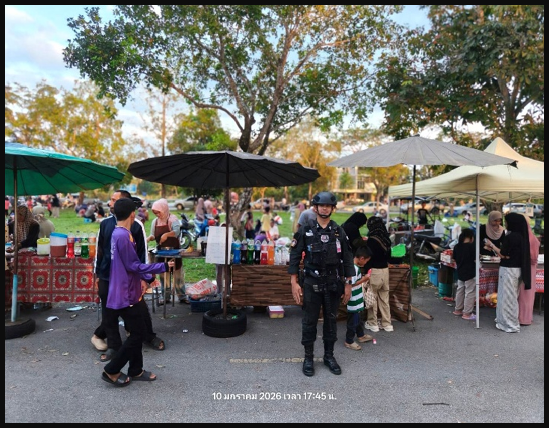 เมื่อวันที่ 10 ม.ค.69 เวลา 17.30 น. ภายใต้อำนวยการ พ.ต.อ.ถาวร ผลกล้า ผกก.สภ.โกตาบารู, พ.ต.ท.ฉัตรพงศ์ คงเจริญ รอง ผกก.ป.สภ.โกตาบารู,พ.ต.ท.ธนาเทพ วรรณกูล สวป.สภ.โกตาบารู สั่งการให้ ร.ต.ท.อับดุลรอซะ มะสะนิง รอง สว(ป.) สภ.โกตาบารู (ร้อยเวร 20) พร้อม ชป.จู่โจม รักษาความปลอดภัย และตรวจสอบความเรียบร้อย สถานท่องเที่ยว stop walk talk พบปะพูดคุยร้านค้าภายในสวนสาธารณะ เพื่อสร้างความสัมพันธ์ที่ดี ระหว่างประชาชนกับเจ้าหน้าที่ตำรวจ แสดงกำลังเพื่อจำกัดเสรีภาพ สกัดกั้นการเคลื่อนไหวของผู้ก่อการร้าย และสร้างความปลอดภัยให้กับประชาชนในพื้นที่รับผิดชอบ