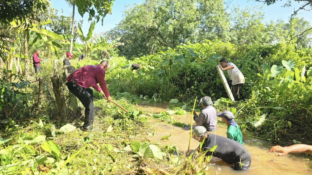 พ.ต.ท.ธนาเทพ วรรณกูล สวป.สภ.โกตาบารู, ร.ต.ต.ย๊ะยา แดวอสนุง รอง สว(ป.) สภ.โกตาบารู พร้อม ชุด ชมส.สภ.โกตาบารู ออกร่วมกิจกรรมพัฒนาลอกคูน้ำเตรียมความพร้อมรับสถานการณ์น้ำท่วมร่วมกับประชาชนในพื้นที่บ้านมะดือลง ม.2 ต โกตาบารู อ.รามัน จว.ยะลา