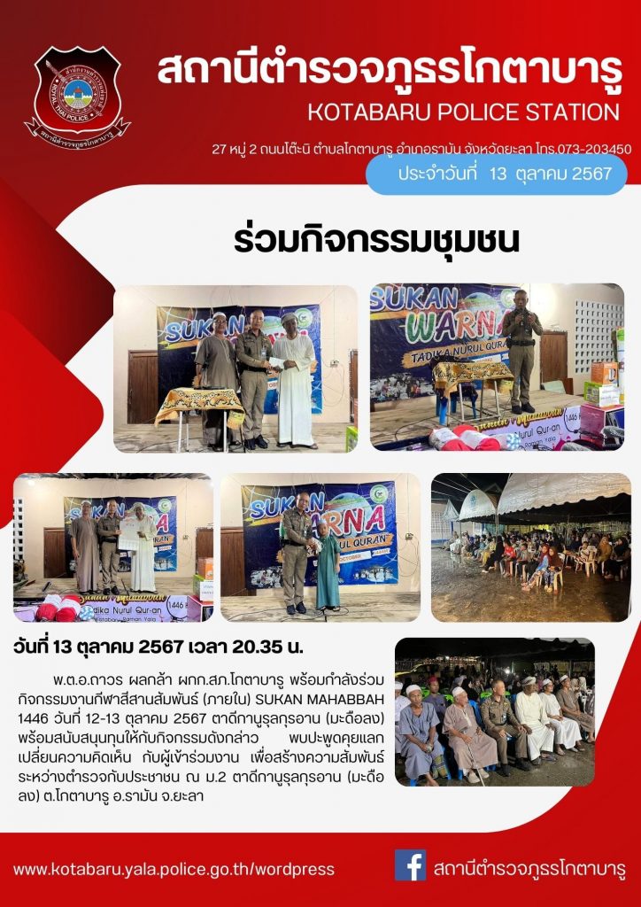ร่วมกิจกรรมชุมชน 15 ตุลาคม 2567 โดย อัมรอน หะระตี / ข่าวภารกิจผู้บังคับบัญชา Facebook iconFacebookTwitter iconTwitterLINE iconLine