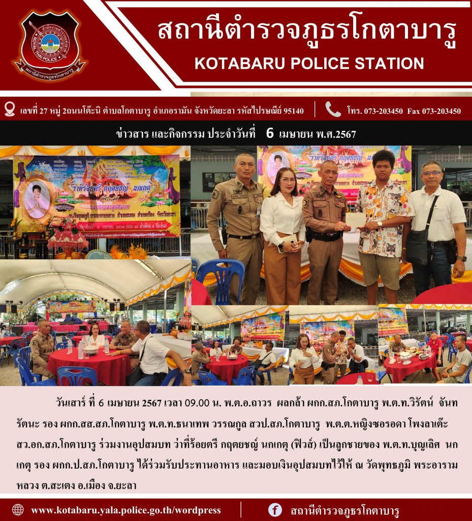 ร่วมงานอุปสมบท 25 เมษายน 2567 โดย อัมรอน หะระตี / ข่าวภารกิจผู้บังคับบัญชา วันเสาร์ ที่ 6 เมษายน 2567 เวลา 09.00 น. พ.ต.อ.ถาวร ผลกล้า ผกก.สภ.โกตาบารู พ.ต.ท.วิรัตน์ จันทรัตนะ รอง ผกก.สส.สภ.โกตาบารู พ.ต.ท.ธนาเทพ วรรณกูล สวป.สภ.โกตาบารู พ.ต.ต.หญิงซอรอดา โพงลาเต๊ะสว.อก.สภ.โกตาบารู ร่วมงานอุปสมบท ว่าที่ร้อยตรี กฤตยชญ์ นกเกตุ (ฟิวส์) เป็นลูกชายของ พ.ต.ท.บุญเลิศ นกเกตุ รอง ผกก.ป.สภ.โกตาบารู ได้ร่วมรับประทานอาหาร และมอบเงินอุปสมบทไว้ให้ ณ วัดพุทธภูมิ พระอารามหลวง ต.สะเตง อ.เมือง จ.ยะลา Facebook iconFacebookTwitter iconTwitterLINE iconLine