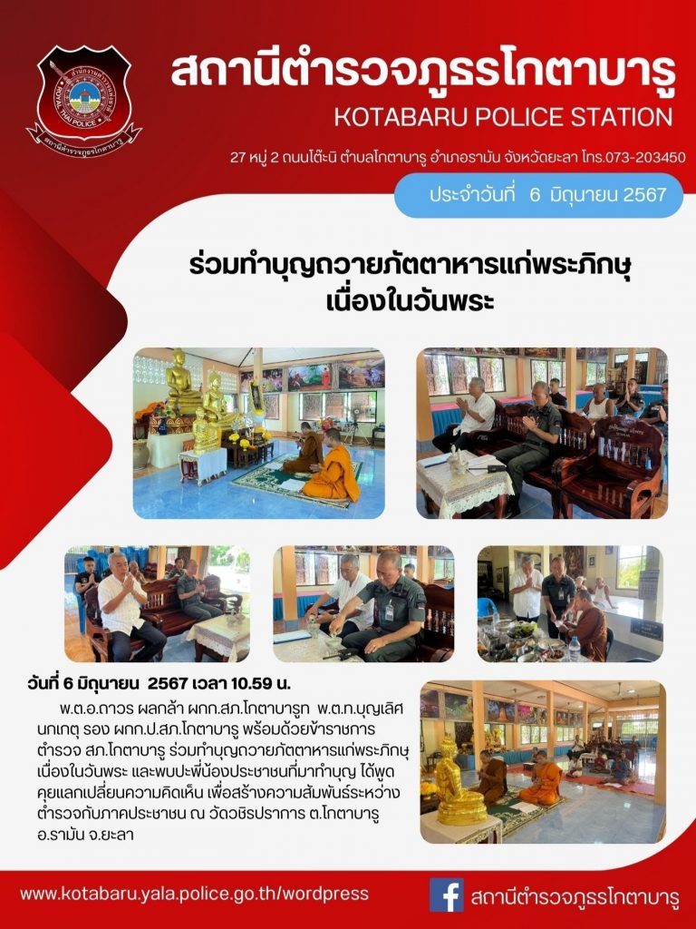 ร่วมทำบุญถวายภัตตาหารแก่พระภิกษุ เนื่องในวันพระ