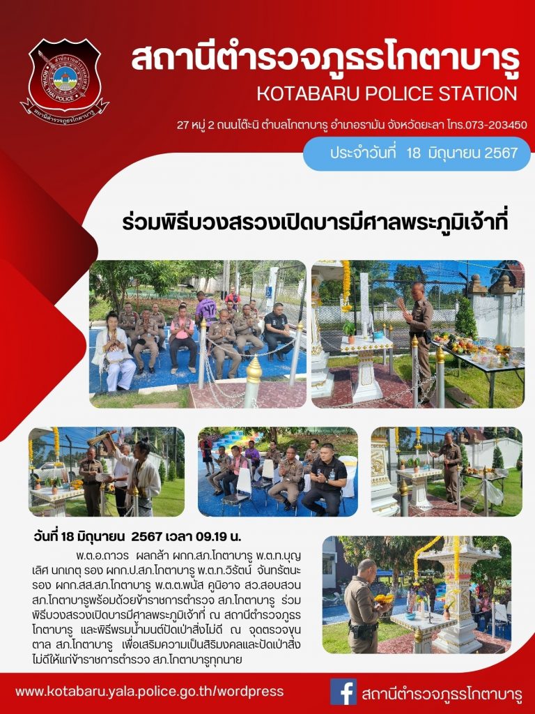 ร่วมพิธีบวงสรวงเปิดบารมีศาลพระภูมเจ้าที่ 19 มิถุนายน 2567 โดย อัมรอน หะระตี / ข่าวภารกิจผู้บังคับบัญชา Facebook iconFacebookTwitter iconTwitterLINE iconLine