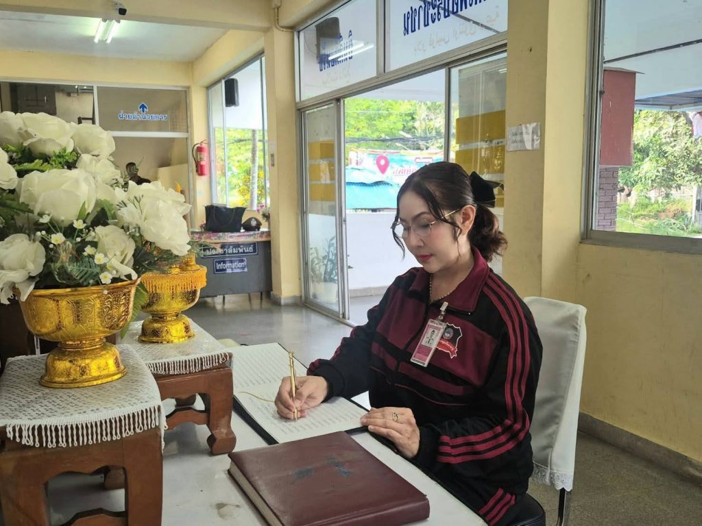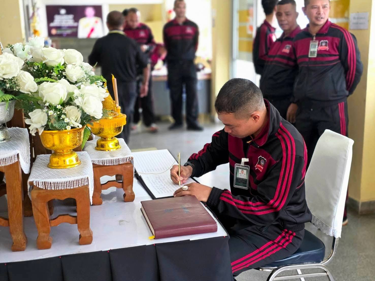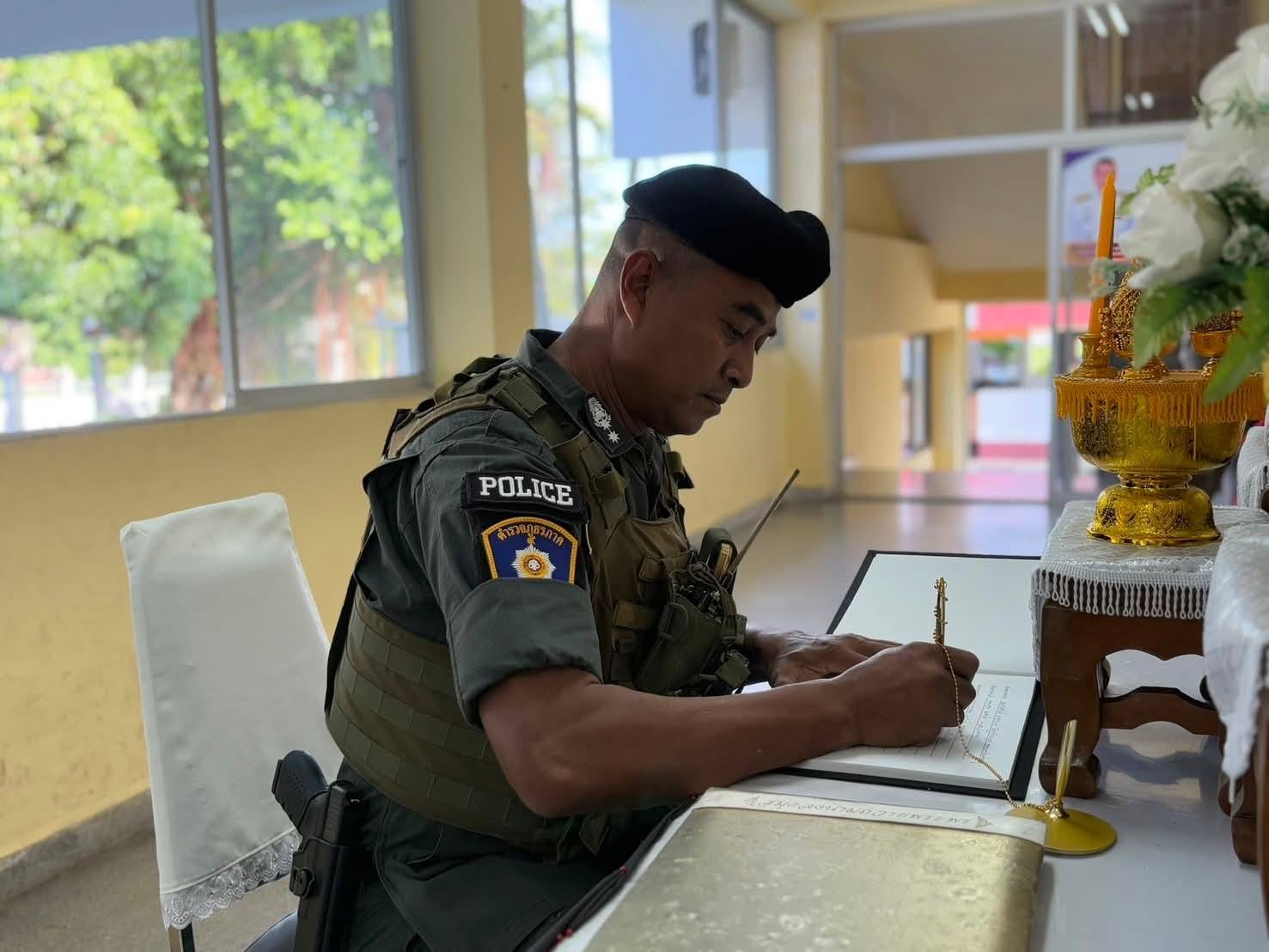 ลงนามถวายความอาลัย 5 พฤศจิกายน 2568 โดย หัสซาน สะแลมะ / งานอำนวยการ,งานอำนวยการ (พ.ย.) วันที่ 5 พฤศจิกายน 2568 เวลา 09.00 น. พ.ต.อ.ถาวร ผลกล้า ผกก.สภ.โกตาบารู พ.ต.ท.คณนาถ ไพนุงพงศ์ รอง ผกก.(สอบสวน)สภ.โกตาบารู พ.ต.ท.ฉัตรพงค์ คงเจริญ รอง ผกก. ป.ฯ พ.ต.ท.หญิง ซอรอดา โพงลาเต๊ะ สว.อก.สภ.โกตาบารู ร.ต.อ.ถนัด ไชยพูน รอง สว.สส.สภ.โกตาบารูพร้อมด้วยข้าราชการตำรวจ สภ.โกตาบารู ร่วมลงนามถวายความอาลัย แด่สมเด็จพระนางเจ้าสิริกิติ์ พระบรมราชินีนาถ พระบรมราชชนนีพันปีหลวง ณ สภ.โกตาบารู อ.รามัน จว.ยะลา Facebook iconFacebookTwitter iconTwitterLINE iconLine