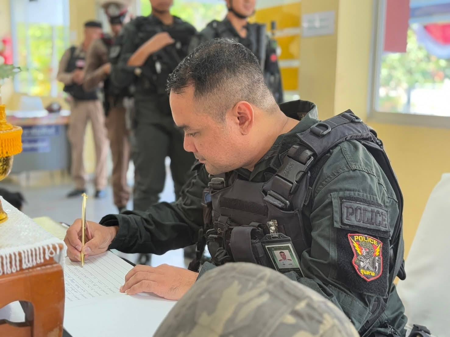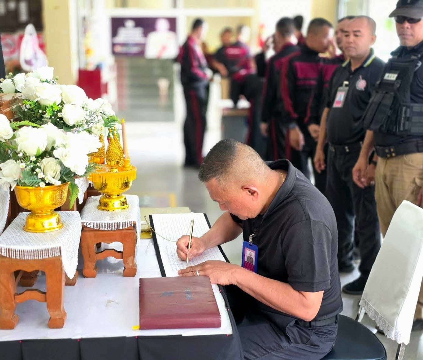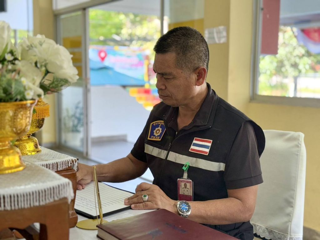 ลงนามถวายความอาลัย 5 พฤศจิกายน 2568 โดย หัสซาน สะแลมะ / งานอำนวยการ,งานอำนวยการ (พ.ย.) วันที่ 5 พฤศจิกายน 2568 เวลา 09.00 น. พ.ต.อ.ถาวร ผลกล้า ผกก.สภ.โกตาบารู พ.ต.ท.คณนาถ ไพนุงพงศ์ รอง ผกก.(สอบสวน)สภ.โกตาบารู พ.ต.ท.ฉัตรพงค์ คงเจริญ รอง ผกก. ป.ฯ พ.ต.ท.หญิง ซอรอดา โพงลาเต๊ะ สว.อก.สภ.โกตาบารู ร.ต.อ.ถนัด ไชยพูน รอง สว.สส.สภ.โกตาบารูพร้อมด้วยข้าราชการตำรวจ สภ.โกตาบารู ร่วมลงนามถวายความอาลัย แด่สมเด็จพระนางเจ้าสิริกิติ์ พระบรมราชินีนาถ พระบรมราชชนนีพันปีหลวง ณ สภ.โกตาบารู อ.รามัน จว.ยะลา Facebook iconFacebookTwitter iconTwitterLINE iconLine