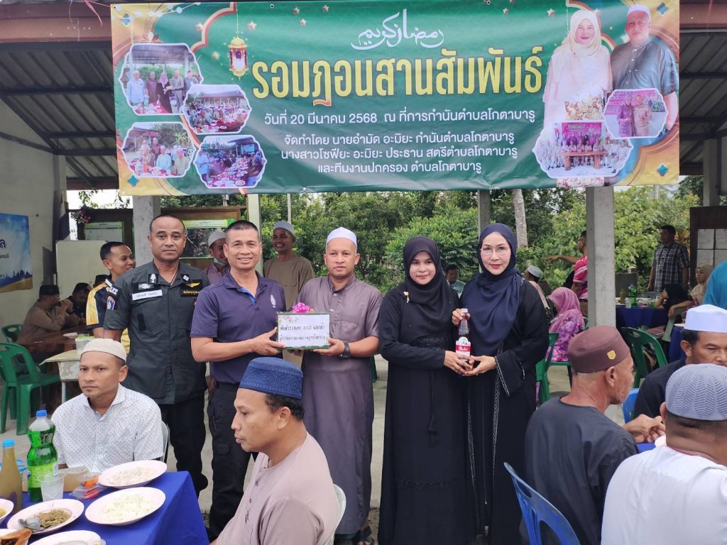 พ.ต.ท.วิรัตน์ จันทรัตนะ รอง ผกก.สส.สภ.โกตาบารู รรท.ผกก.สภ.โกตาบารู พ.ต.ท.ฉัตรพงศ์ คงเจริญ รอง ผกก.ป.สภ.โกตาบารู ว่าที่ พ.ต.ท.หญิง ซอรอดา โพงลาเต๊ะสว.อก.สภ.โกตาบารู ร.ต.อ.คเชนทร์ โต๊ะเด็ง รอง สวป.สภ.โกตาบารู ร.ต.ต.ย๊ะยา แดวอสนุง รอง สวป.สภ.โกตาบารู ชุด ตชส. พร้อมด้วย ผู้นำท้องถิ่น ผู้นำท้องที่ ผู้นำศาสนา และภาคประชาชน ร่วมกิจกรรมละศิลอด “รอมฎอนสัมพันธ์ ประจำปี ฮิจเราะห์ศักราช 1446 / ประจำปี 2568” เดือนรอมฎอน อันประเสริฐ และได้มอบอินผาลัม โดยมี นายอำมัด อะมิยะ กำนัน ตำบลโกตาบารู เป็นผู้รับมอบ ณ บ้านกำนัน ตำบลโกตาบารู