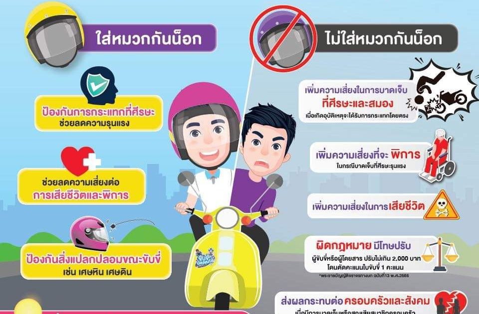 👉🏻สวมหมวกกันน็อก แม้จะนั่งซ้อนท้าย
