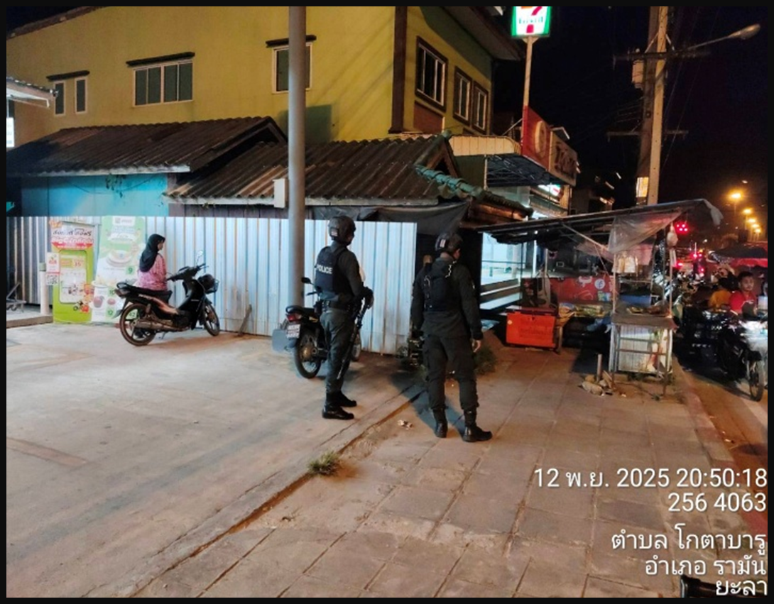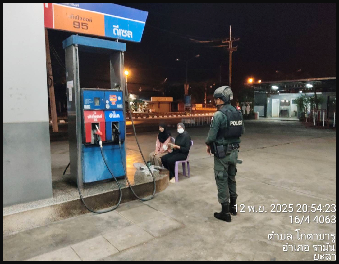 เมื่อ​วันที่​ 12 พ.ย.68 เวลา 20.30​ น.ภายใต้อำนวยการ พ.ต.อ.ถาวร ผลกล้า ผกก.สภ.โกตาบารู             พ.ต.ท.ฉัตรพงศ์  คงเจริญ รอง ผกก.ป.สภ.โกตาบารู,พ.ต.ท.ธนาเทพ วรรณกูล สวป.สภ.โกตาบารู   สั่งการให้ ร.ต.อ.ประคอง อุ้ยกระโทก รอง สวป.สภ.กรงปินัง/ชรก.รอง สวป.สภ.โกตาบารู (ร้อยเวร 20) พร้อม ชป.จู่โจม ออกลาดตระเวนตรวจสอบความเรียบร้อยและรักษาความปลอดภัย ร้านสะดวกซื้อ       มินิบิ๊กซี, เซเว่น, ปั้มน้ำมัน, ร้านทองฟุรกอน