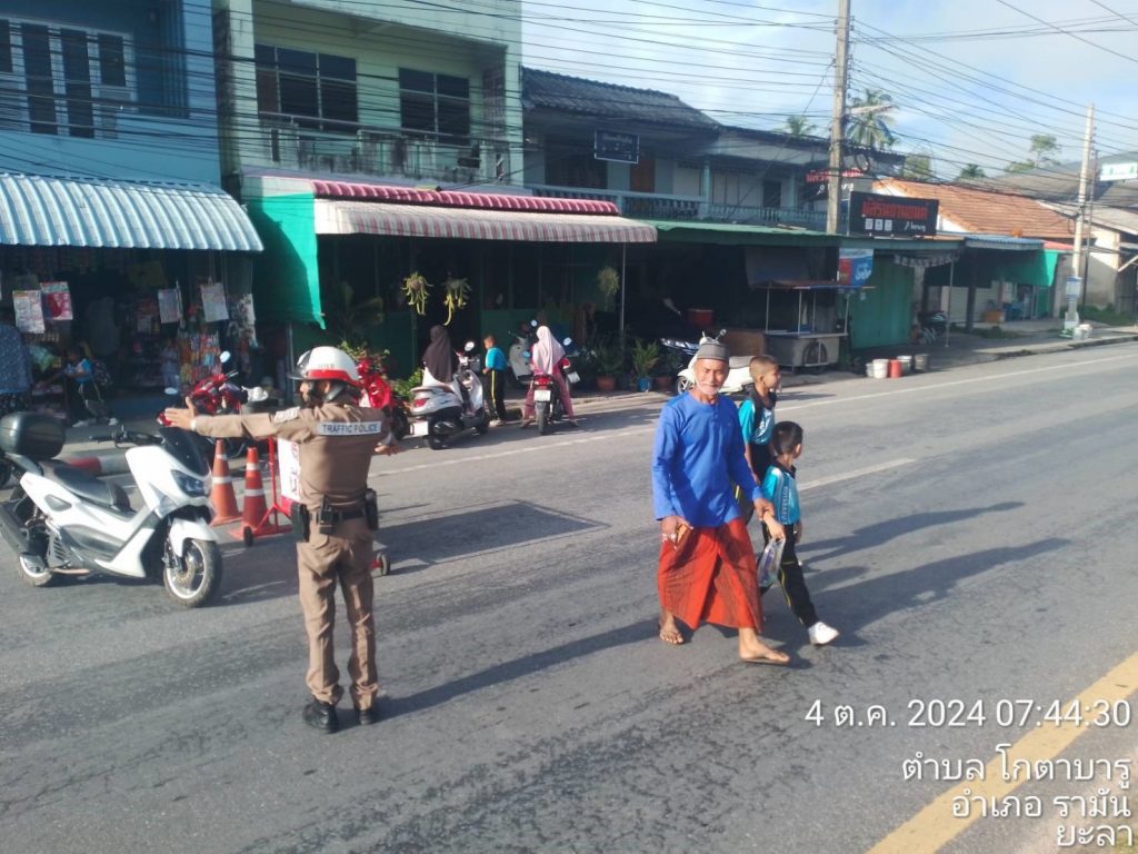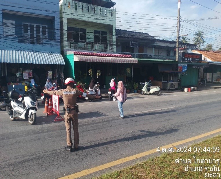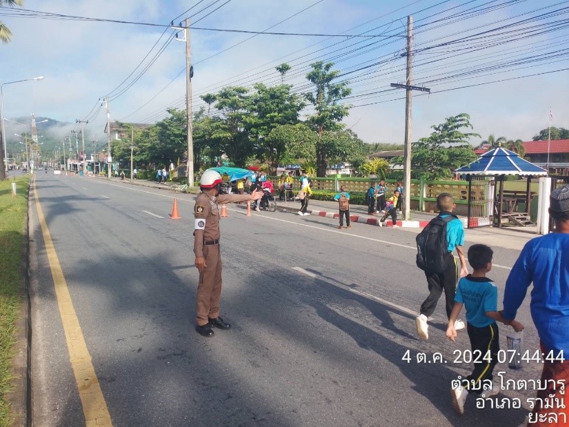 ชุดปฏิบัติการจราจรได้มีการรักษาความปลอดภัยและอำนวยความสะดวกการจราจรหน้าโรงเรียนบ้านกตาบารู