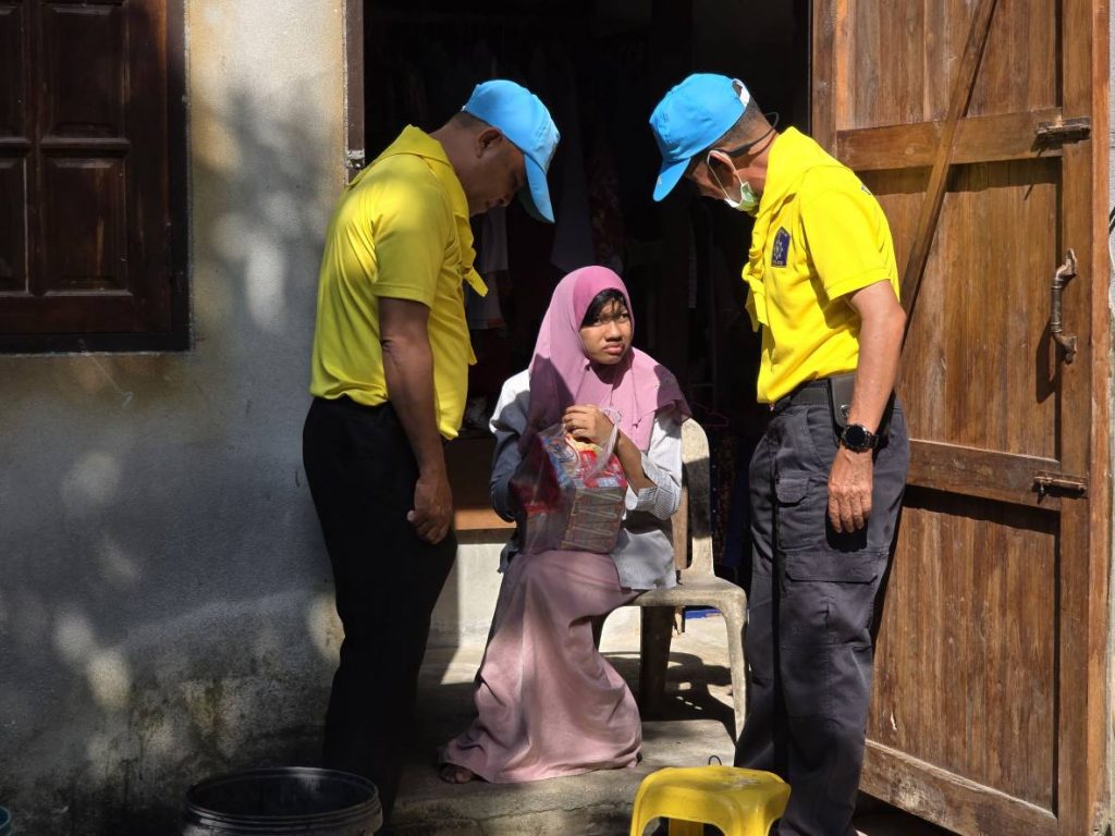 ร.ต.อ.คเชนทร์ โต๊ะเด็งรอง สวป.สภ.โกตาบารู, ร.ต.ต.ย๊ะยา แดวอสนุง รอง สว.(ป.)สภ.โกตาบารู พร้อมชุดจิตอาสา สภ.โกตาบารู ออกตรวจเยี่ยมผู้นำชุมชนและผู้ป่วยในพระบรมราชานุเคราะห์ในพื้นที่ หมู่ที่ 3 ตำบลโกตาบารู อำเภอรามัน จังหวัดยะลา