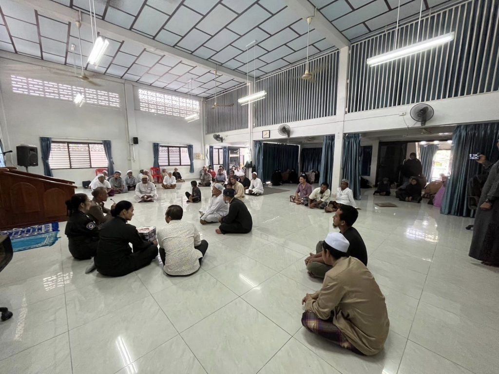 พร้อมด้วย ตำรวจชุดชุมชนสัมพันธ์ พบปะเยี่ยมเยียนผู้นำศาสนา และประชาชนในพื้นที่ ณ มัสยิดต้นมะขาม ม.1 ต.โกตาบารู อ.รามัน จว.ยะลา ได้พูดคุยแลกเปลี่ยนความคิดเห็น ให้ความรู้ข้อกฏหมายต่างๆ เพื่อสร้างความสัมพันธ์ไมตรีที่ดีต่อกัน และให้พี่น้องประชาชนช่วยกันดูแลพื้นที่ให้สงบเรียบร้อย หากพบเจอสิ่งผิดปกติหรือผิดสังเกตุ สามารถแจ้งเจ้าหน้าที่ตำรวจให้มาตรวจสอบได้ทันที