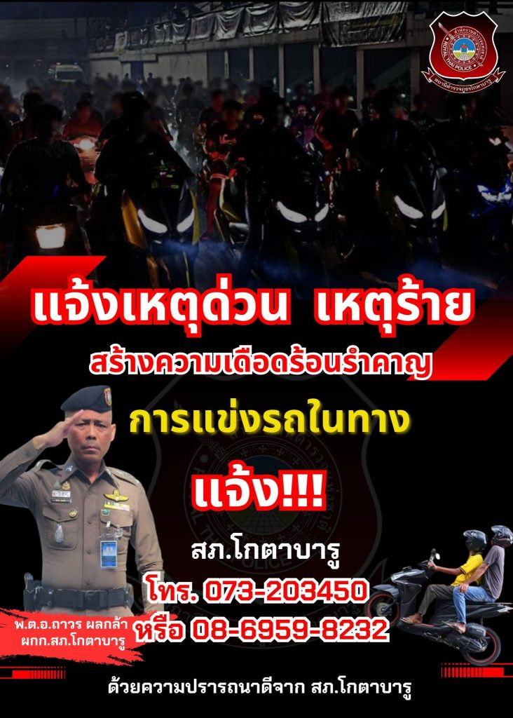 แจ้งเหตุด่วน เหตุร้าย สร้างความเดือดร้อนการแข่งรถในทาง
