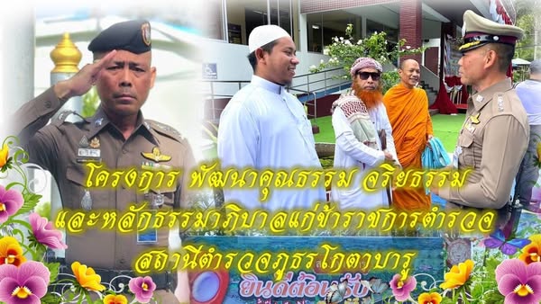 พระมหาอธิปัตย์ กิตติญาโณ เจ้าอาวาสวัดวชิรปราการ นายอาซัน เละแมะ โต๊ะอีหม่านมัสยิดดารุสลาม นายต่วนอับดุลเลาะ ดาโอ๊ะมารียอ อดีตสมาชิกวุฒิสภาจังหวัดยะลา พ.ต.อ.ถาวร ผลกล้า ผกก.สภ.โกตาบารู พ.ต.ท.วิรัตน์ จันทรัตนะรอง ผกก.สส.สภ.โกตาบารู พ.ต.ต.มานิตย์ คงเกลี้ยง สว.สส.สภ.โกตาบารู พ.ต.ต.พนัส คูนิอาจ สว.(สอบสวน)สภ.โกตาบารู พ.ต.ต.หญิง ซอรอดา โพงลาเต๊ะ สว.อก.สภ.โกตาบารู พร้อมด้วยข้าราชการตำรวจ สภ.โกตาบารู เข้าร่วมโครงการพัฒนาคุณธรรม จริยธรรม และ หลักธรรมาภิบาล เพื่อสร้างจิตสำนึกที่ดีให้แก่ผู้เข้าร่วมโครงการฯ เพิ่มทักษะในการทำงานและสร้างทัศนคติที่ดีต่อการทำงานร่วมกันโดยใช้หลักธรรมภิบาล ณ ม.2 ห้องประชุมซอฮาบะห์ ต.โกตาบารู อำเภอรามัน จว.ยะลา