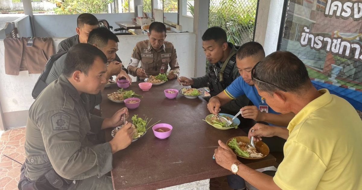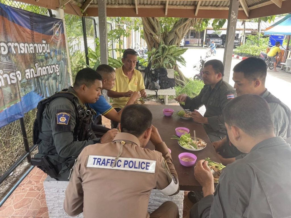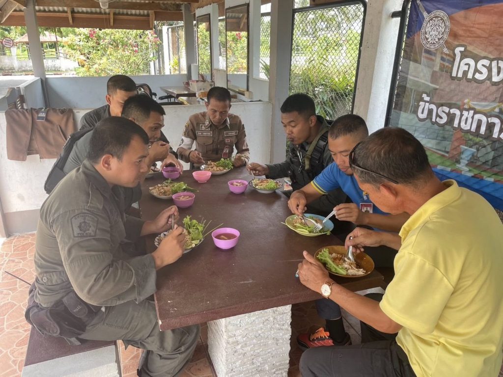 พ.ต.อ.ถาวร ผลกล้า ผกก.สภ.โกตาบารู พ.ต.ท.วิรัตน์ จันทรัตนะ รอง ผกก.สส.สภ.โกตาบารู พ.ต.ต.หญิง ซอรอดา โพงลาเต๊ะ สว.อก.สภ.โกตาบารู พร้อมด้วยข้าราชการตำรวจ สภ.โกตาบารู ร่วมรับประทานอาหารตามโครงการอาหารกลางวัน ข้าราชการตำรวจ สภ.โกตาบารู เพื่อเป็นขวัญกำลังใจในการปฏิบัติหน้าที่