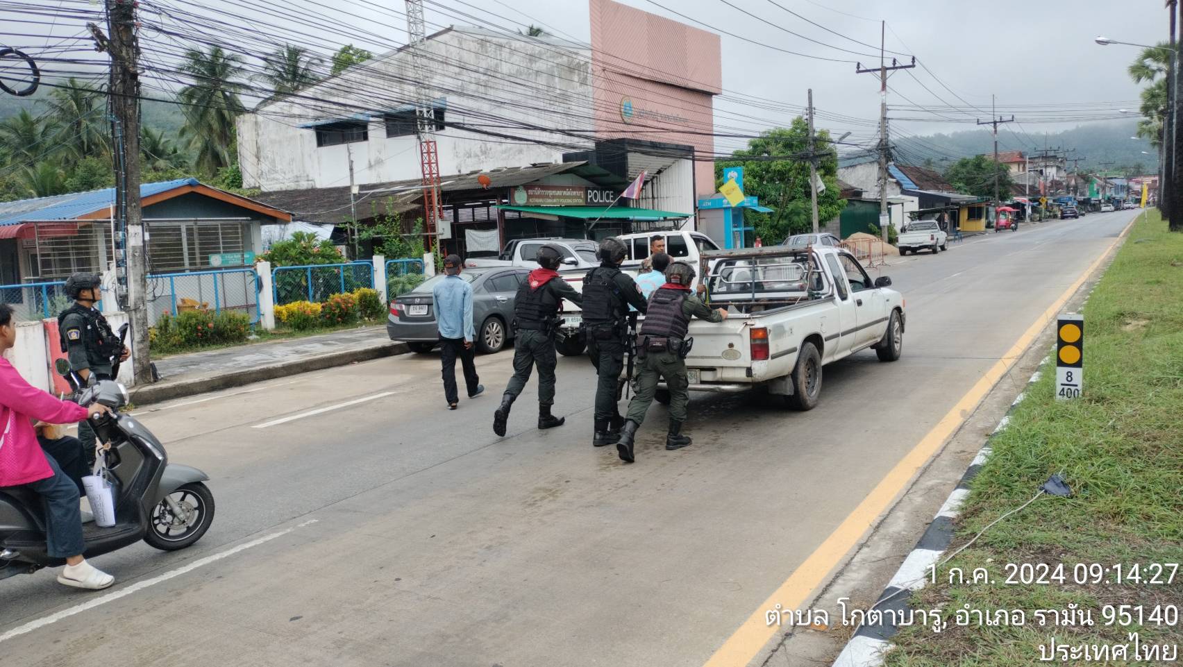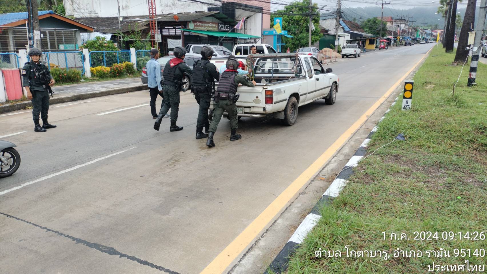 ร.ต.ต.มนูญ ทองตราชูรอง สว.(ป.)สภ.โกตาบารู พร้อม ชุดปฏิบัติการ สภ.โกตาบารู ให้การช่วยเหลือประชาชนรถเสียกลางถนน เพื่อป้องกันอุบัติเหตุจากรถสัญจรผ่าน