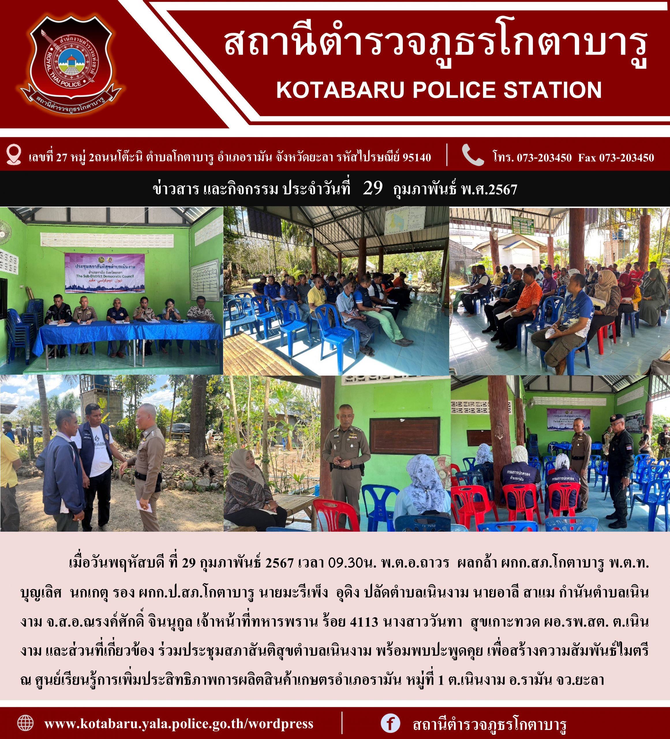 เมื่อวันพฤหัสบดี ที่ 29 กุมภาพันธ์ 2567 เวลา 09.30น. พ.ต.อ.ถาวร  ผลกล้า ผกก.สภ.โกตาบารู พ.ต.ท.บุญเลิ
