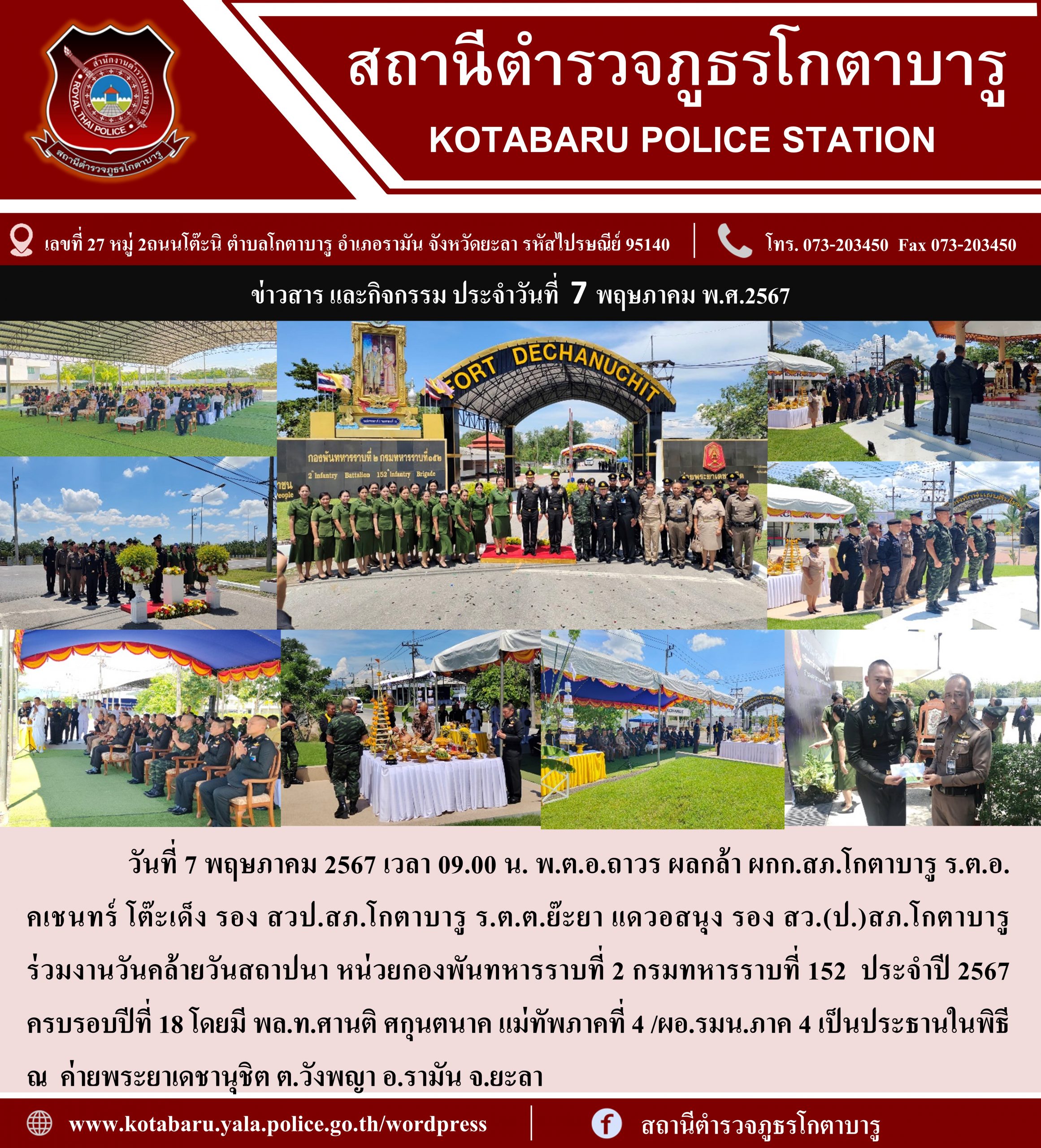 ร่วมงานวันคล้ายวันสถาปนา หน่วยกองพันทหารราบที่ 2 กรมทหารราบที่ 152 ประจำปี 2567