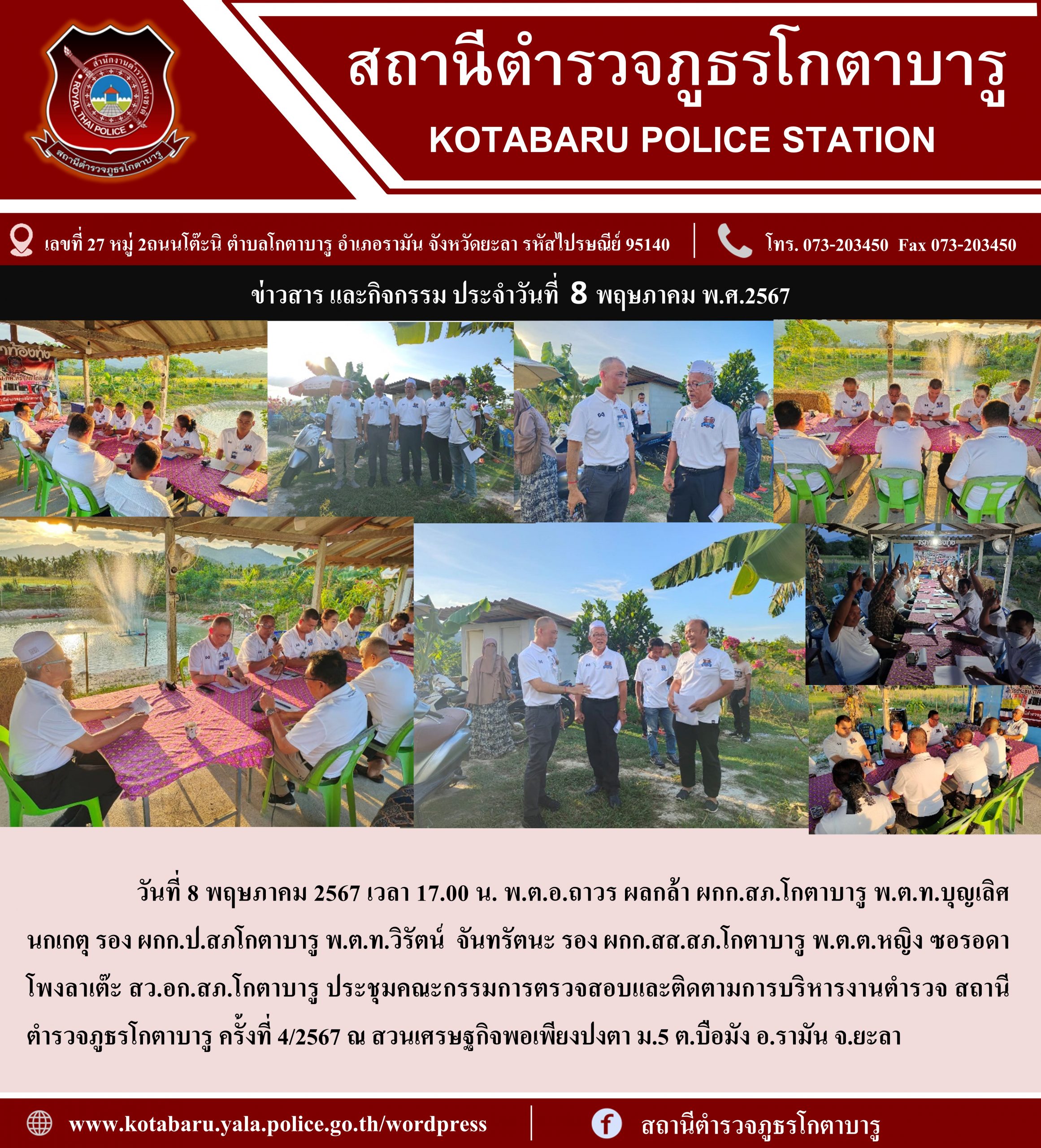 ประชุมคณะกรรมการตรวจสอบและติดตามการบริหารงานตำรวจ สถานีตำรวจภูธรโกตาบารู ครั้งที่ 4/2567