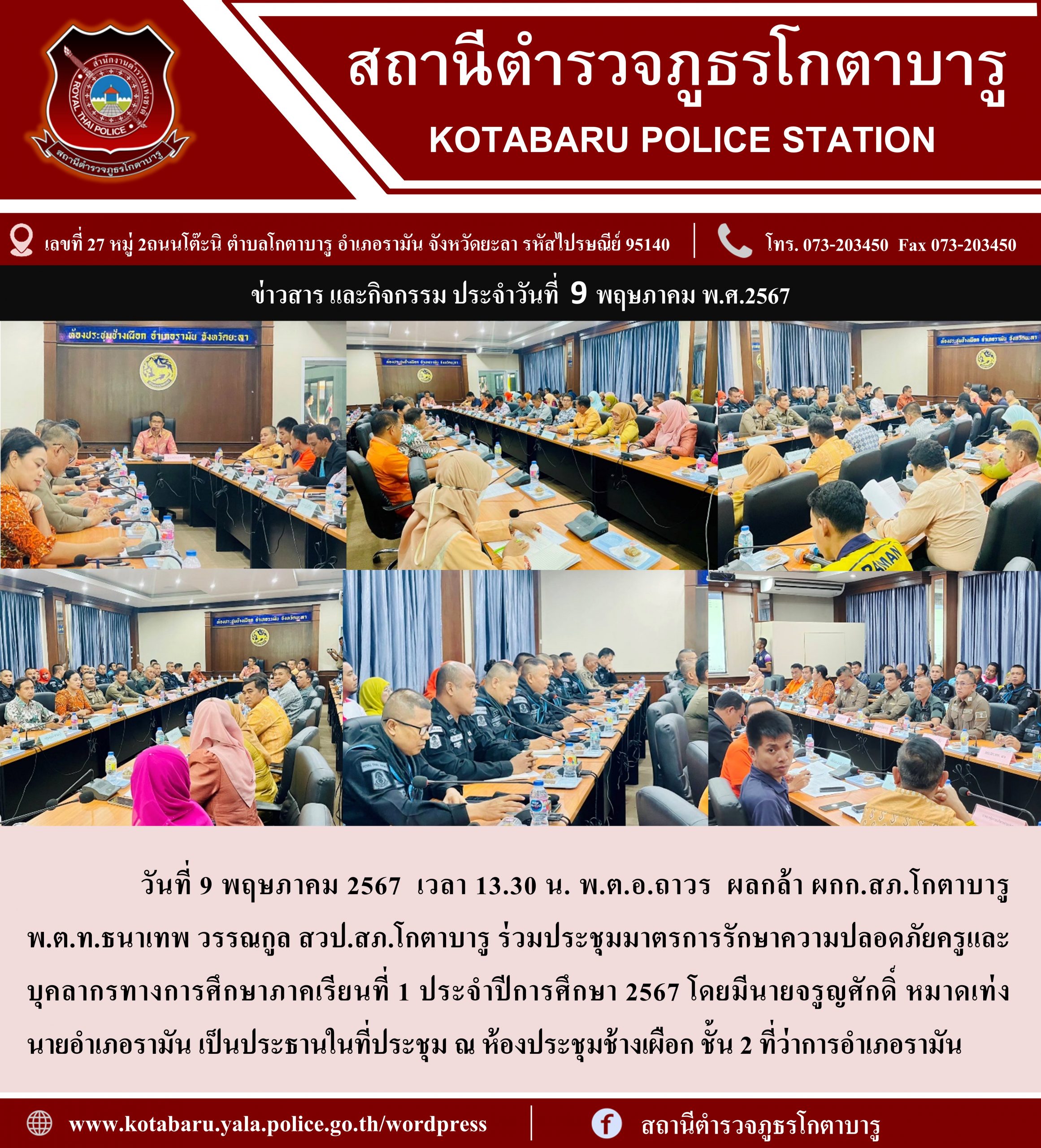 ร่วมประชุมมาตรการรักษาความปลอดภัยครูและบุคลากรทางการศึกษาภาคเรียนที่ 1 ประจำปีการศึกษา 2567