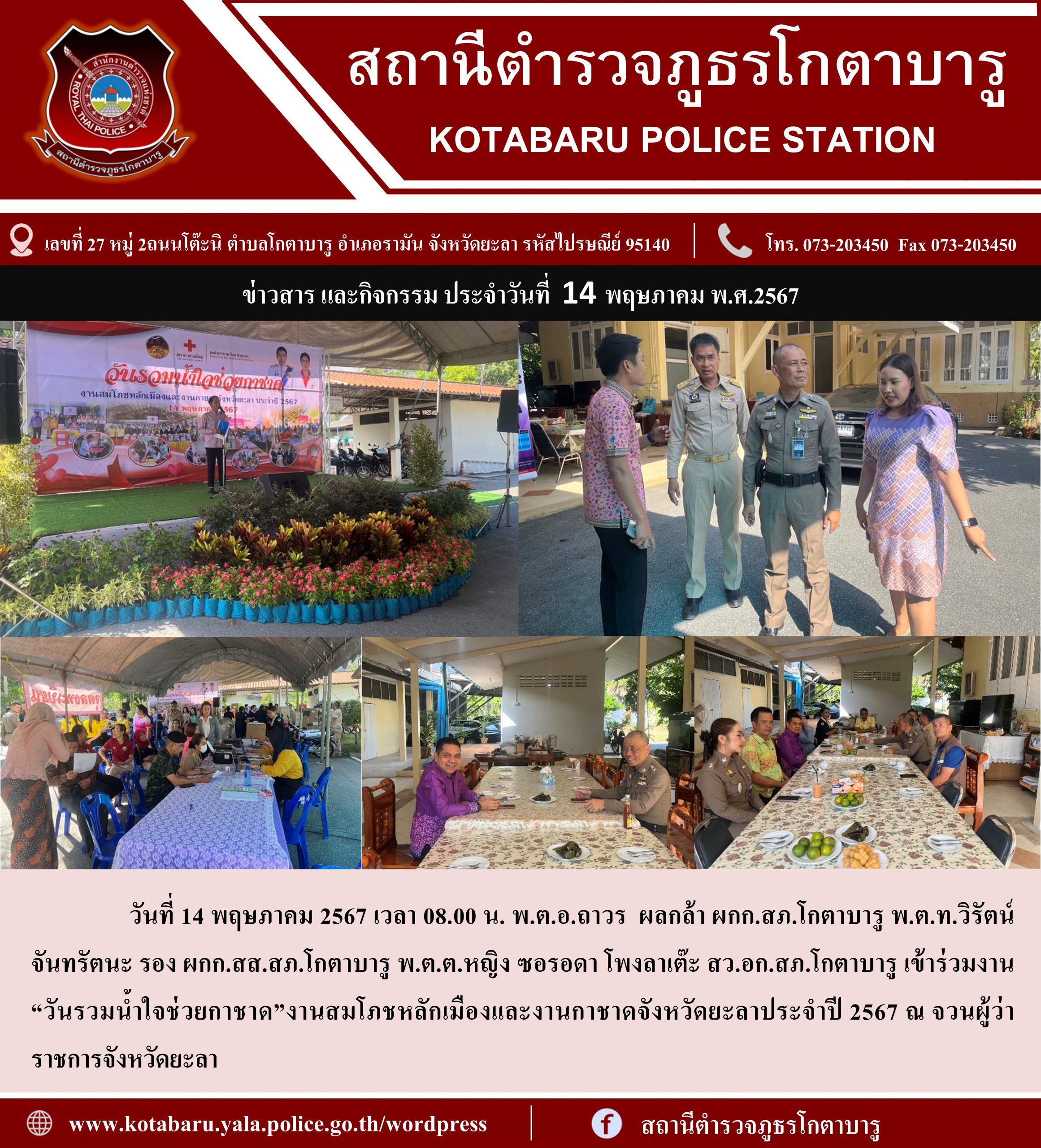 ร่วมงาน “วันรวมน้ำใจช่วยกาชาด”งานสมโภชหลักเมืองและงานกาชาดจังหวัดยะลาประจำปี 2567