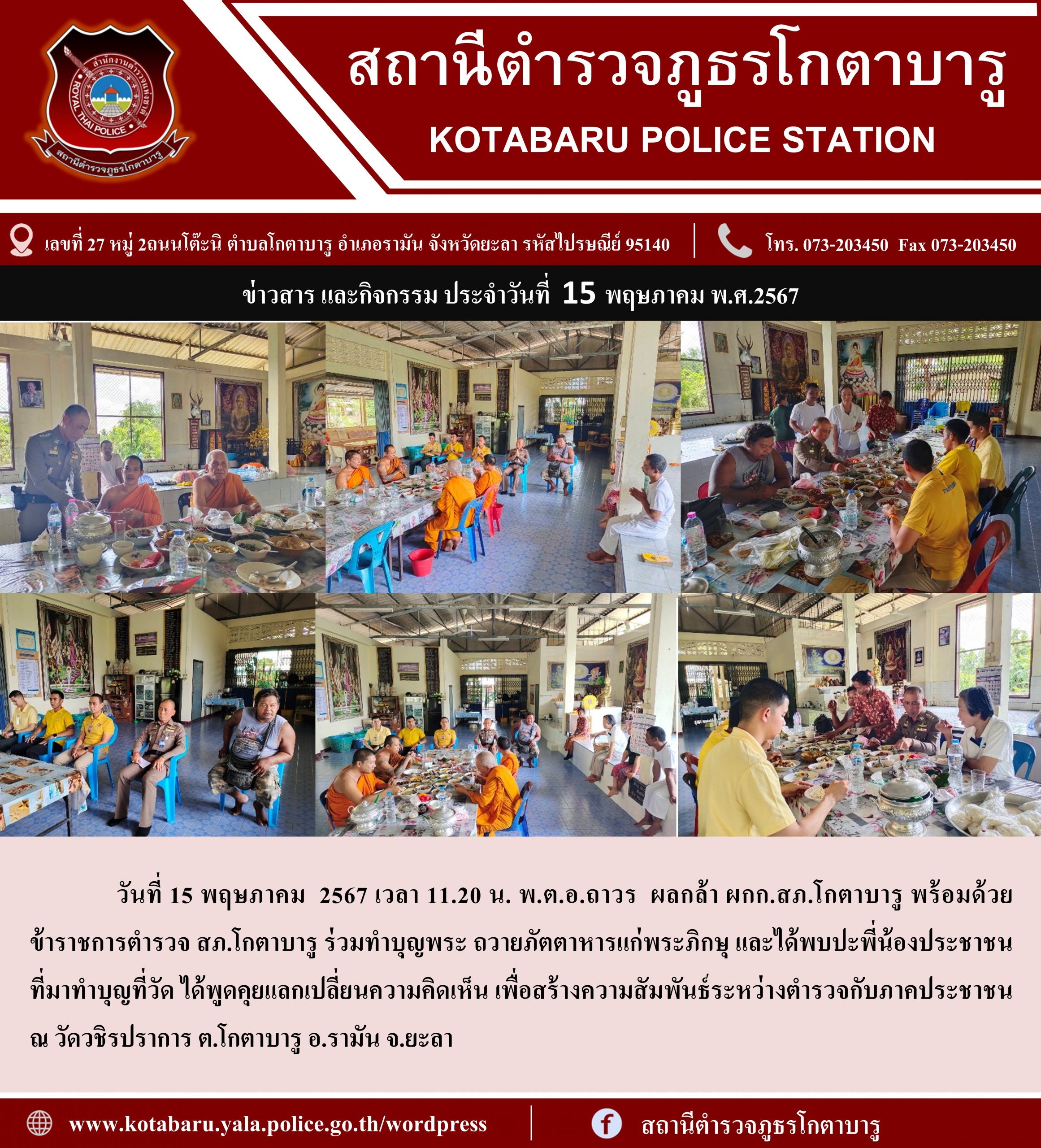 วันที่ 15 พฤษภาคม 2567 เวลา 11.20 น. พ.ต.อ.ถาวร ผลกล้า ผกก.สภ.โกตาบารู พร้อมด้วยข้า