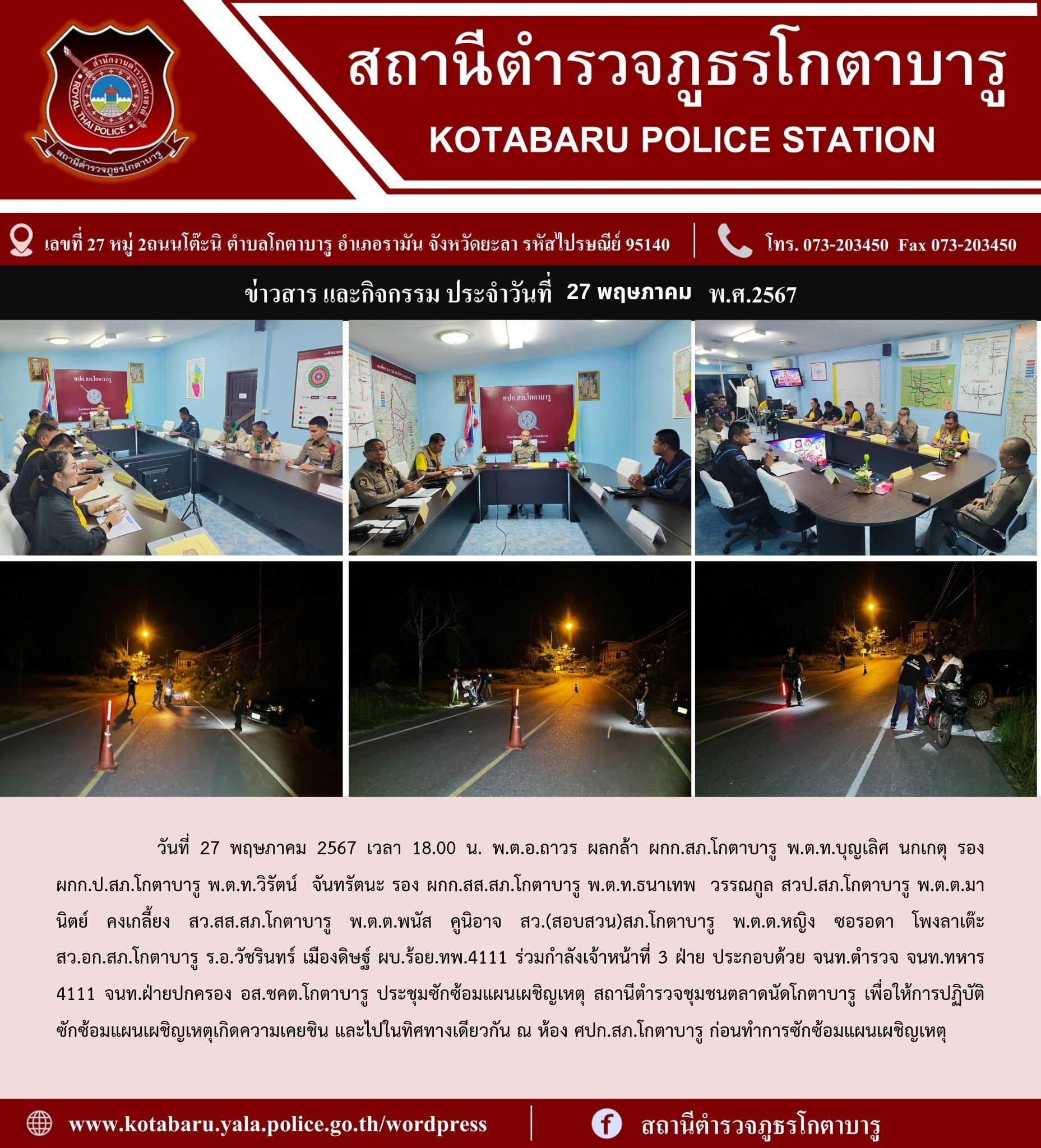 วันที่ 11 พฤษภาคม 2567 เวลา 09.10 น. พ.ต.อ.ถาวร ผลกล้า ผกก.สภ.โกตาบารู ร.ต.ต.อับด