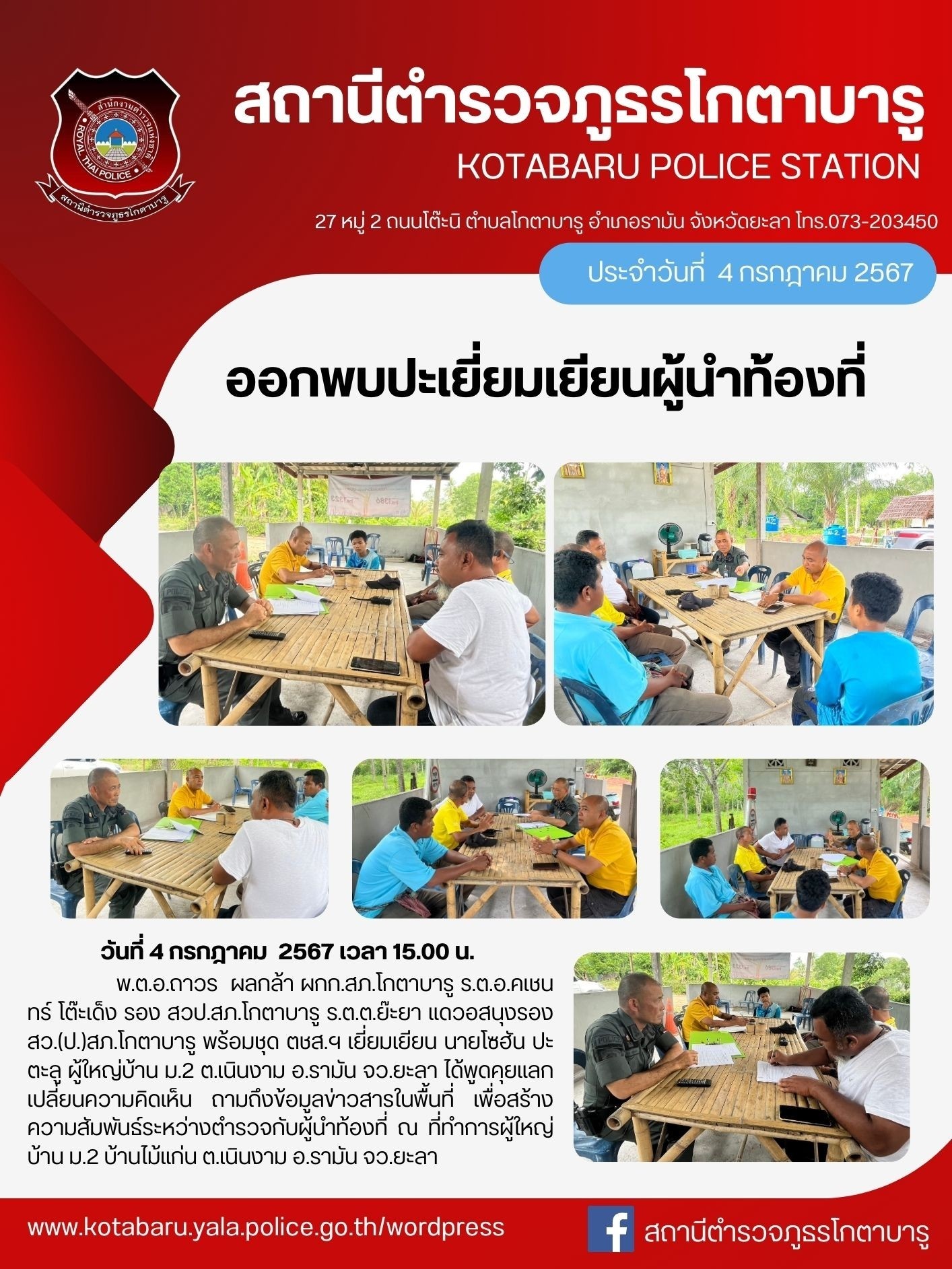 เมื่อวันที่ 1 ก.ค.67 เวลา 09.10 น. ร.ต.ต.มนูญ ทองตราชูรอง สว.(ป.)สภ.โกตาบารู พร้อม ชุดปฏิบัติการ สภ.