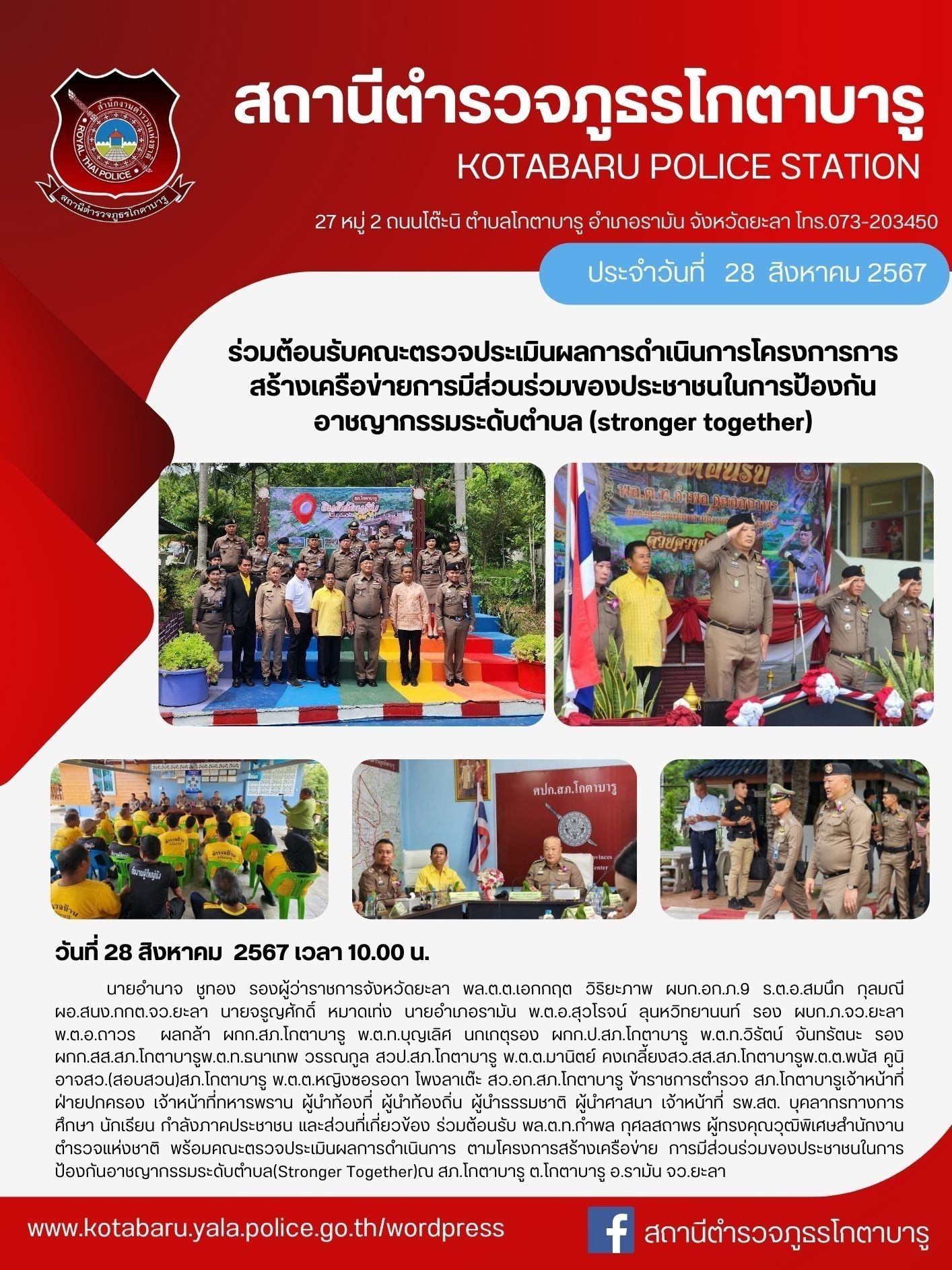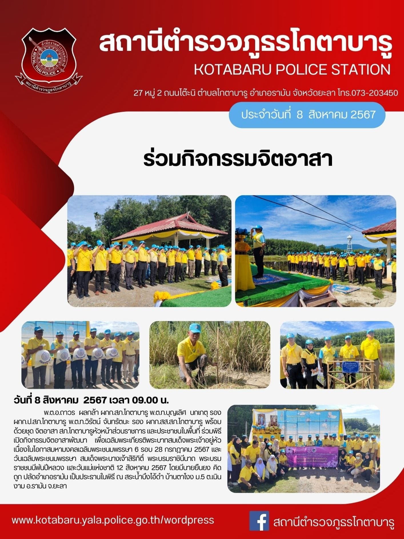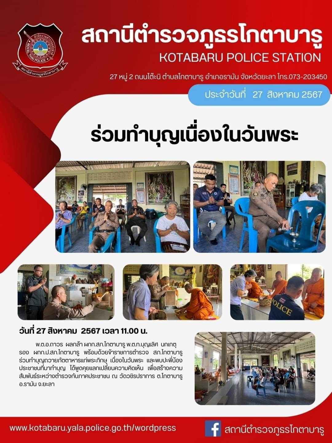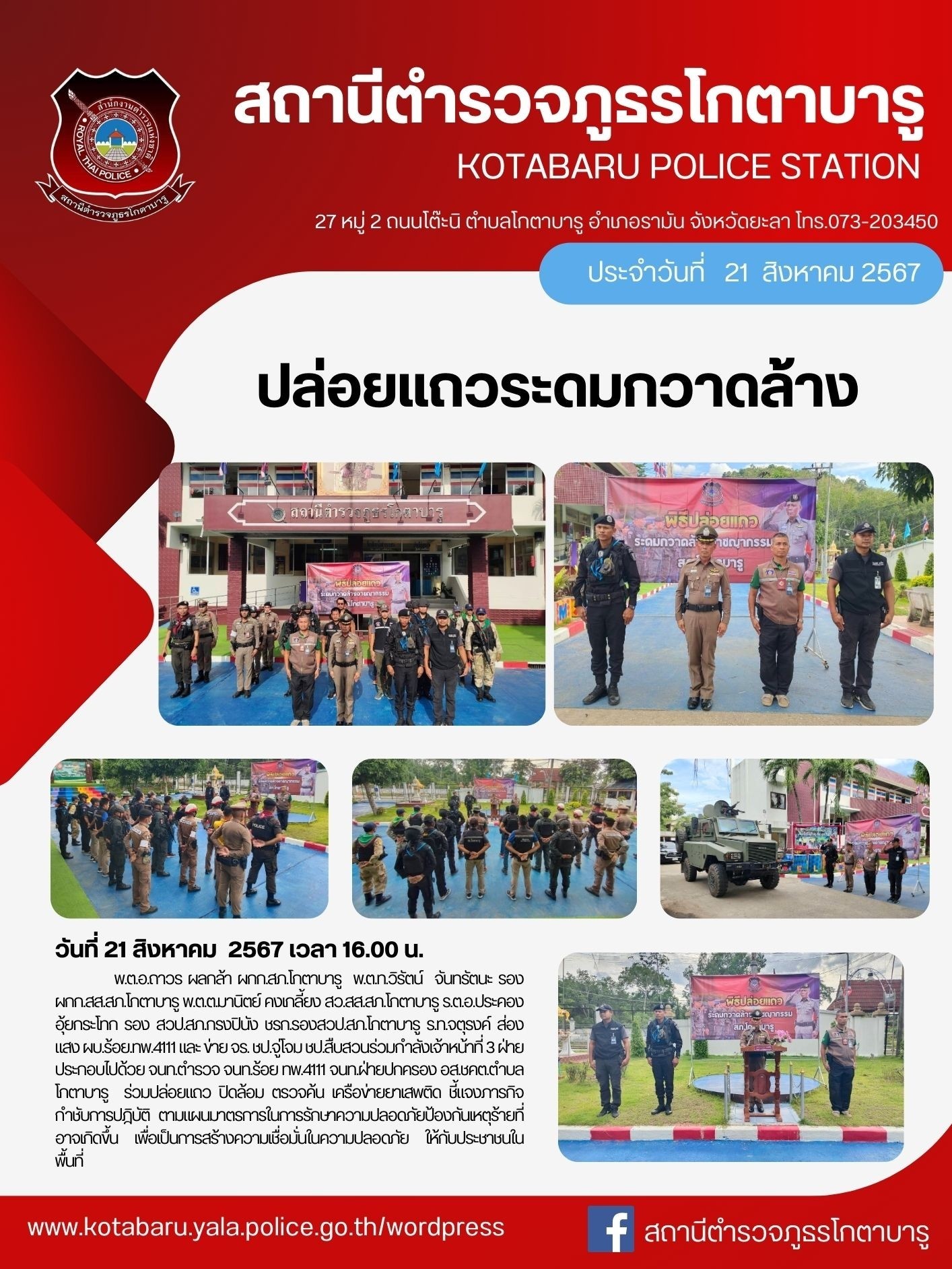 วันที่ 5 สิงหาคม 2567เวลา 14.30 น.พ.ต.ท.วิรัตน์ จันทรัตนะ รอง ผกก.สส.สภ.โกตาบารู ร่วมกับ จนท.สำนักงา
