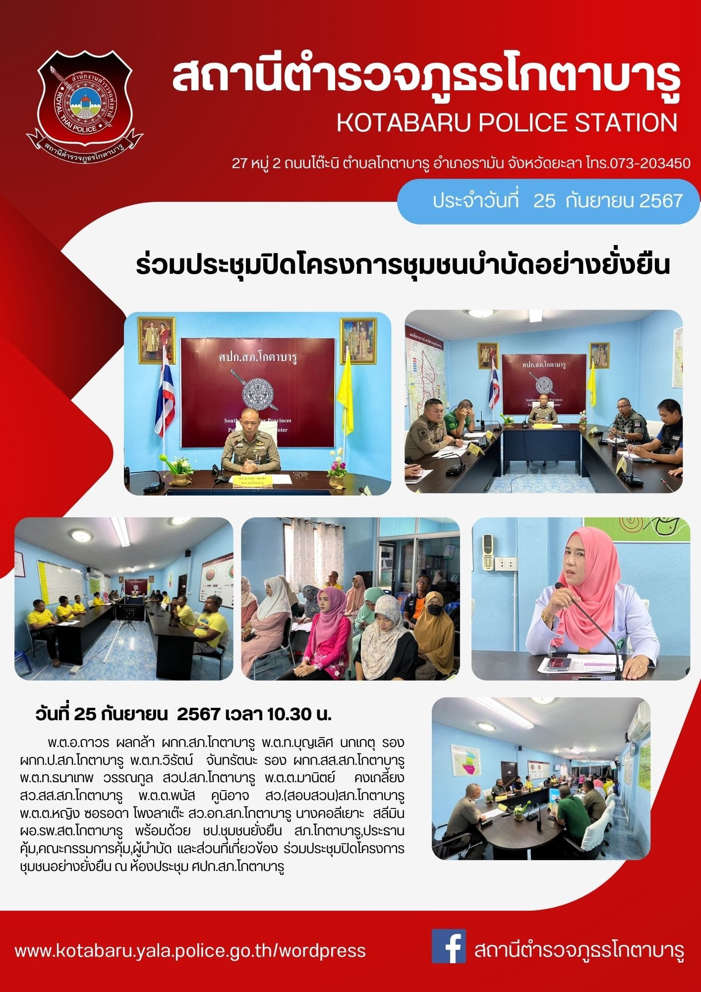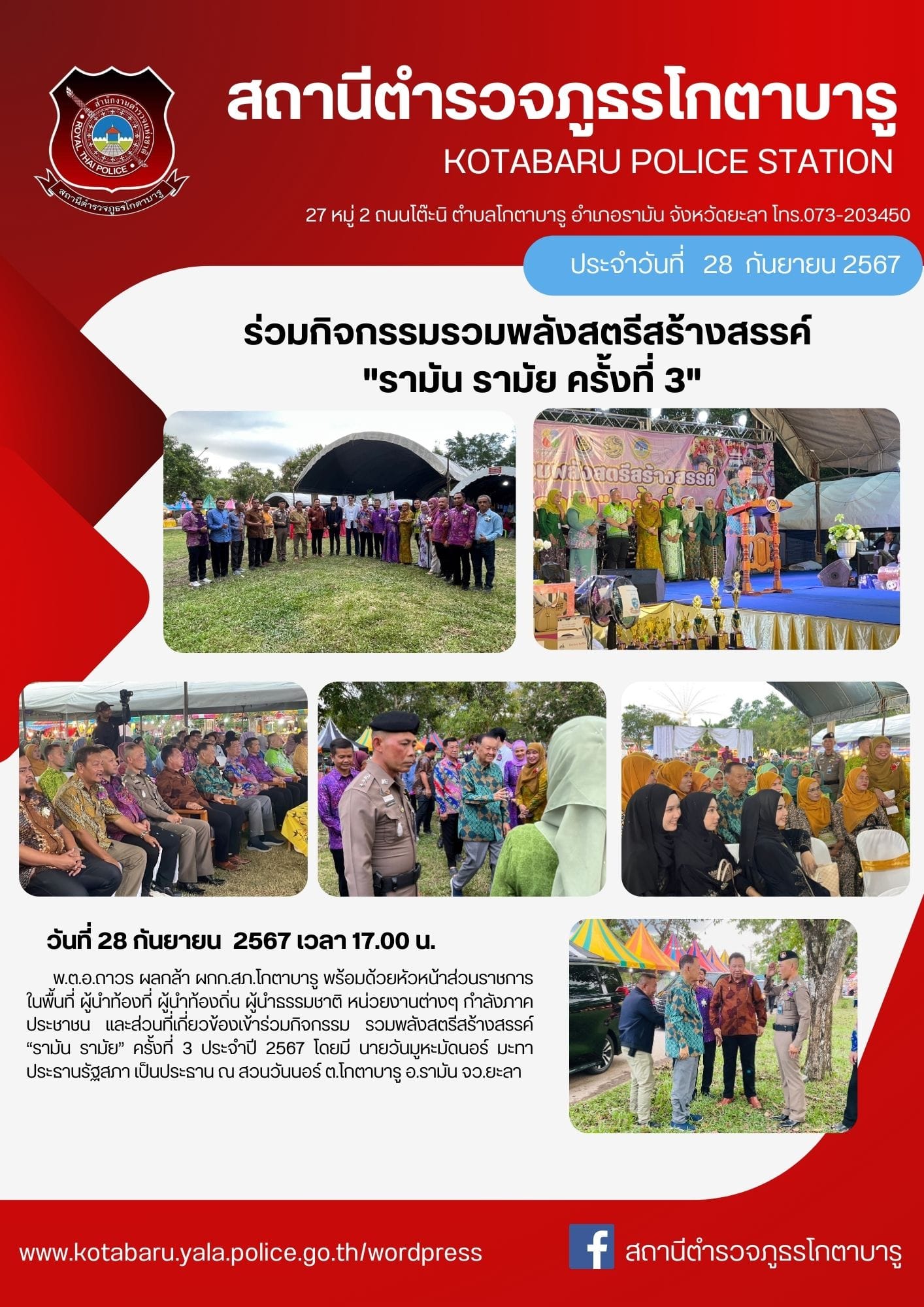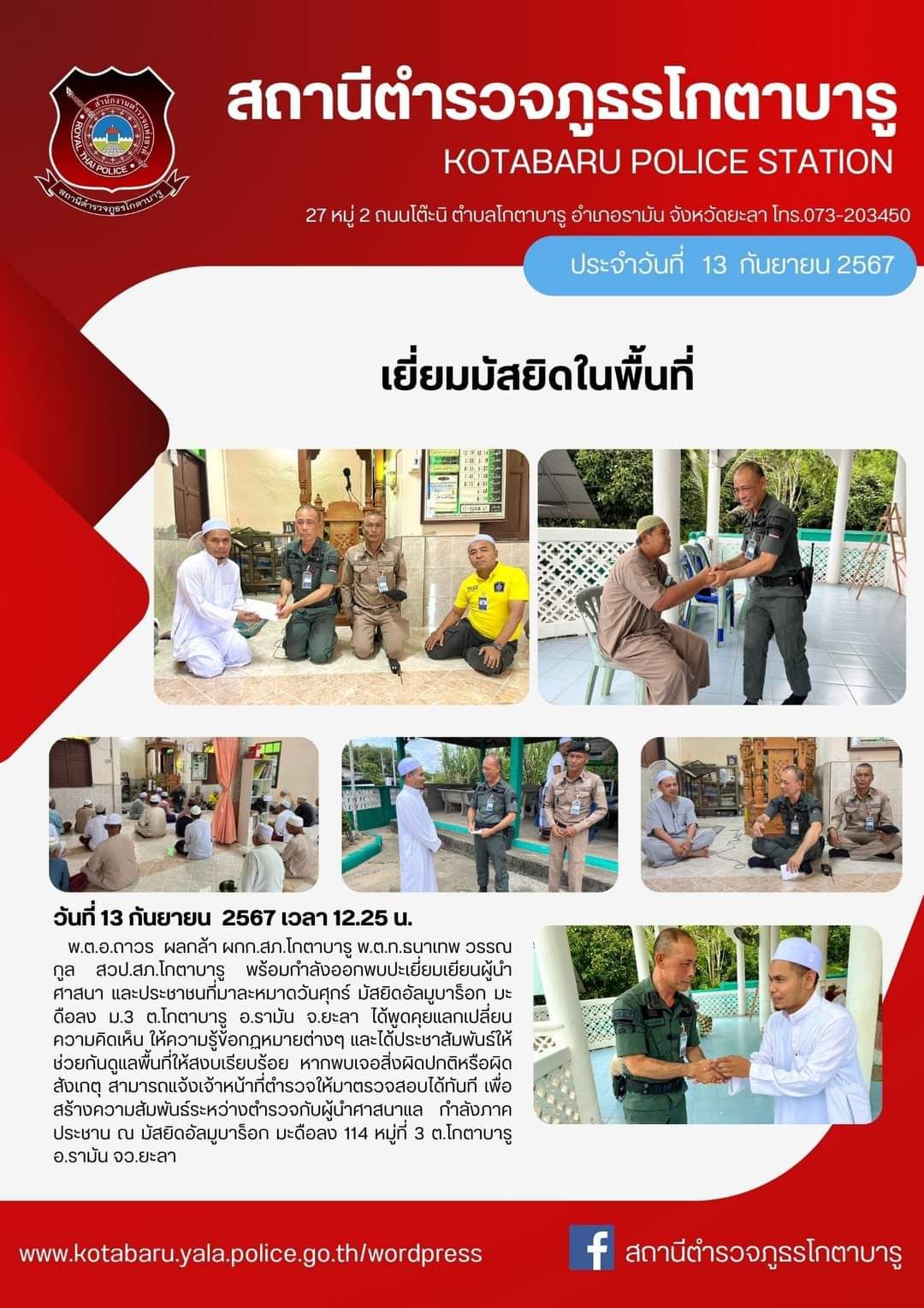วันที่ 28 กันยายน 2567 เวลา 18.30 น. พ.ต.อ.ถาวร ผลกล้า ผกก.สภ.โกตาบารู พ.ต.ท.ธนาเทพ วรรณกูล สวป.สภ.โ