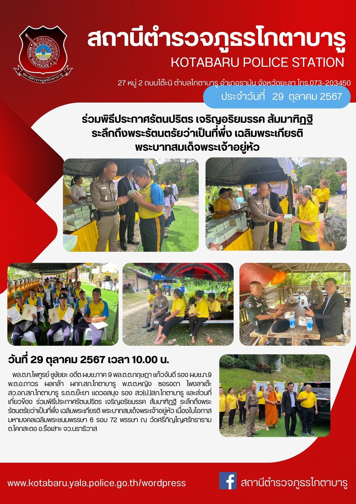 เมื่อ​วันที่​ 22 ต.ค.67 เวลา 11.00 น. ภายใต้อำนวยการ พ.ต.อ.ถาวร ผลกล้า ผกก.สภ.โกตาบารู          ,พ.ต