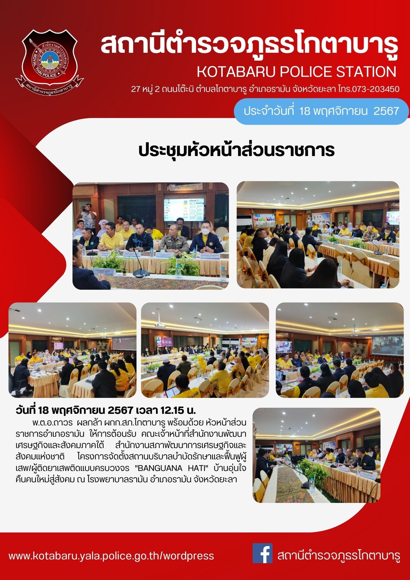เมื่อ 20/10/67 เวลา 08.30 น. พ.ต.อ.ถาวร ผลกล้า ผกก.สภ.โกตาบารู พ.ต.ท.ธนาเทพ วรรณกูล สวป.สภ.โกตาบารู