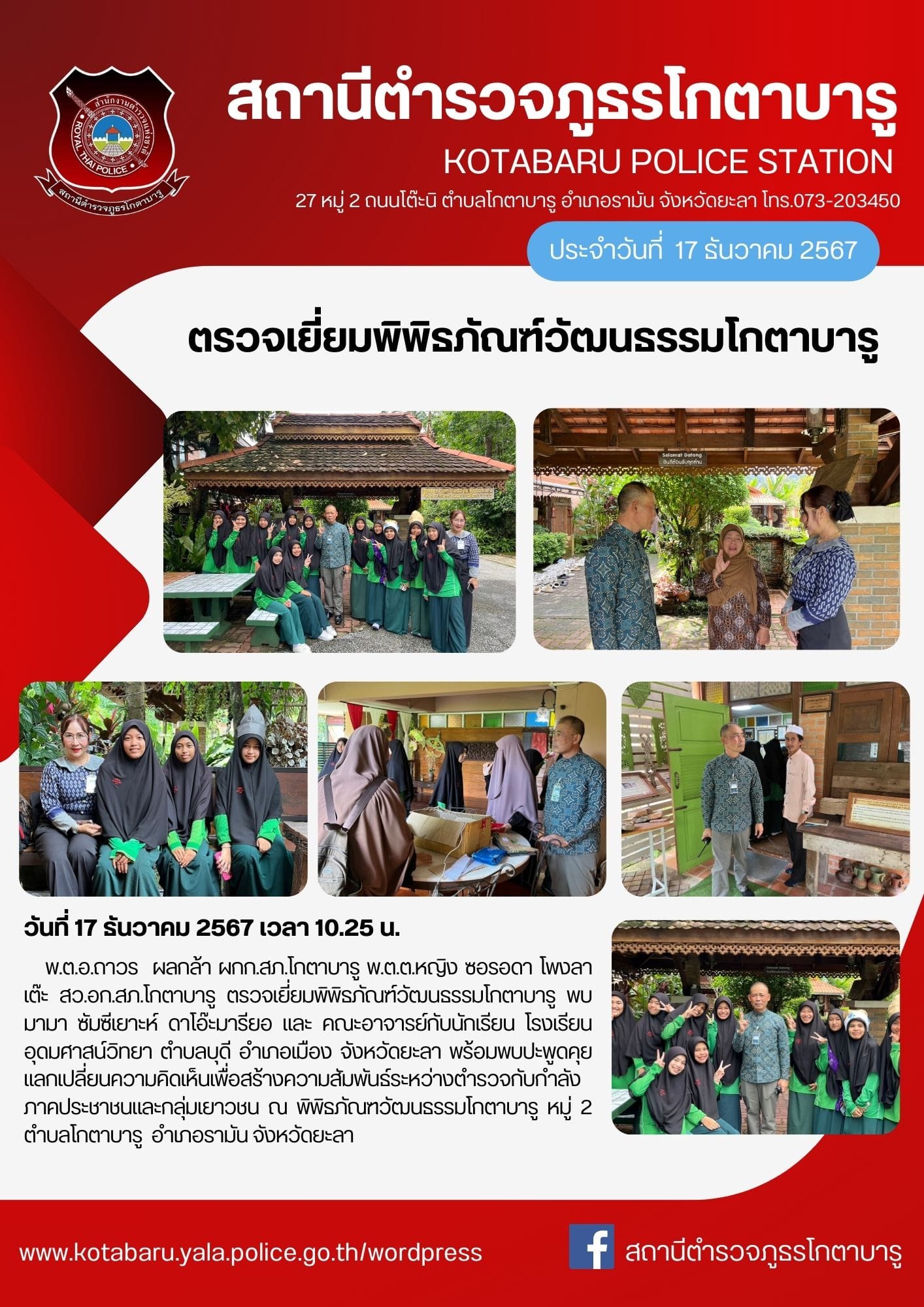 วันที่ 17 ธันวาคม 2567 เวลา 10.25 น. พ.ต.อ.ถาวร ผลกล้า ผกก.สภ.โกตาบารู พ.ต.ต.หญิง ซอรอดา โพงลาเต๊ะ ส