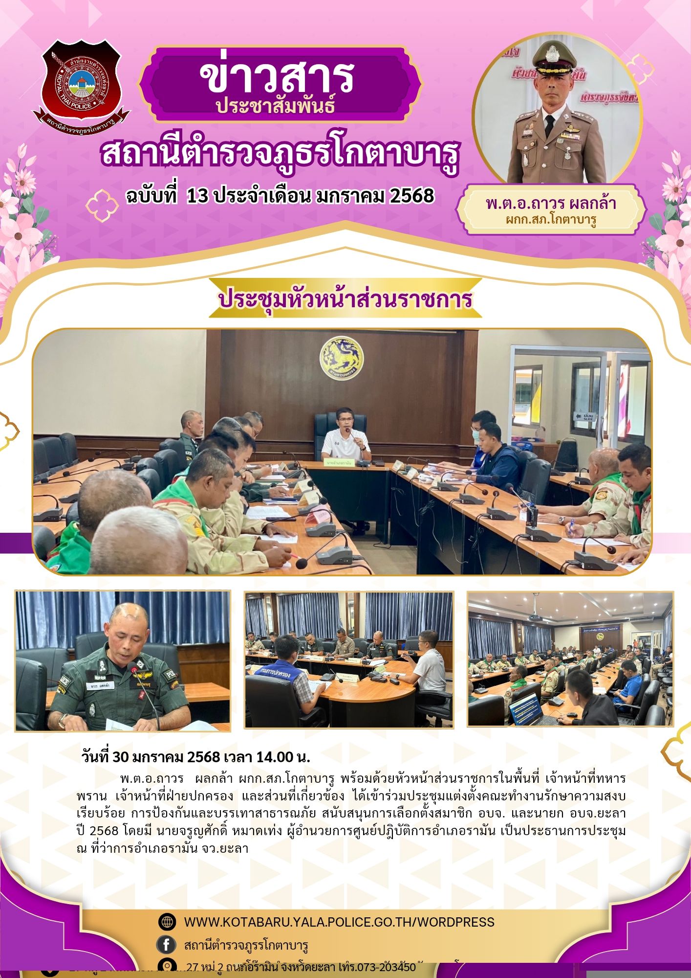 วันที่ 30 มกราคม 2568 เวลา 14.00 น. พ.ต.อ.ถาวร ผลกล้า ผกก.สภ.โกตาบารู พร้อมด้วยหัวหน้าส่วนราชการในพื