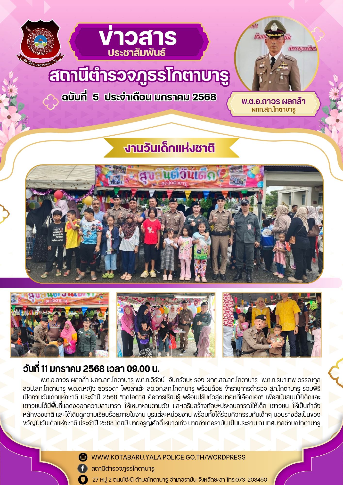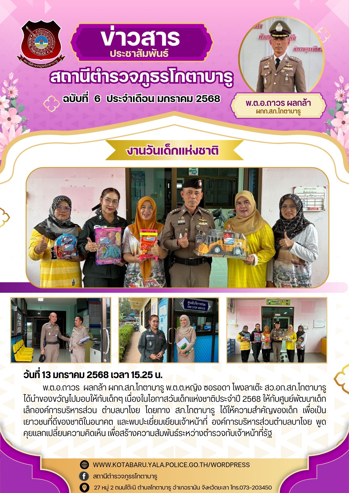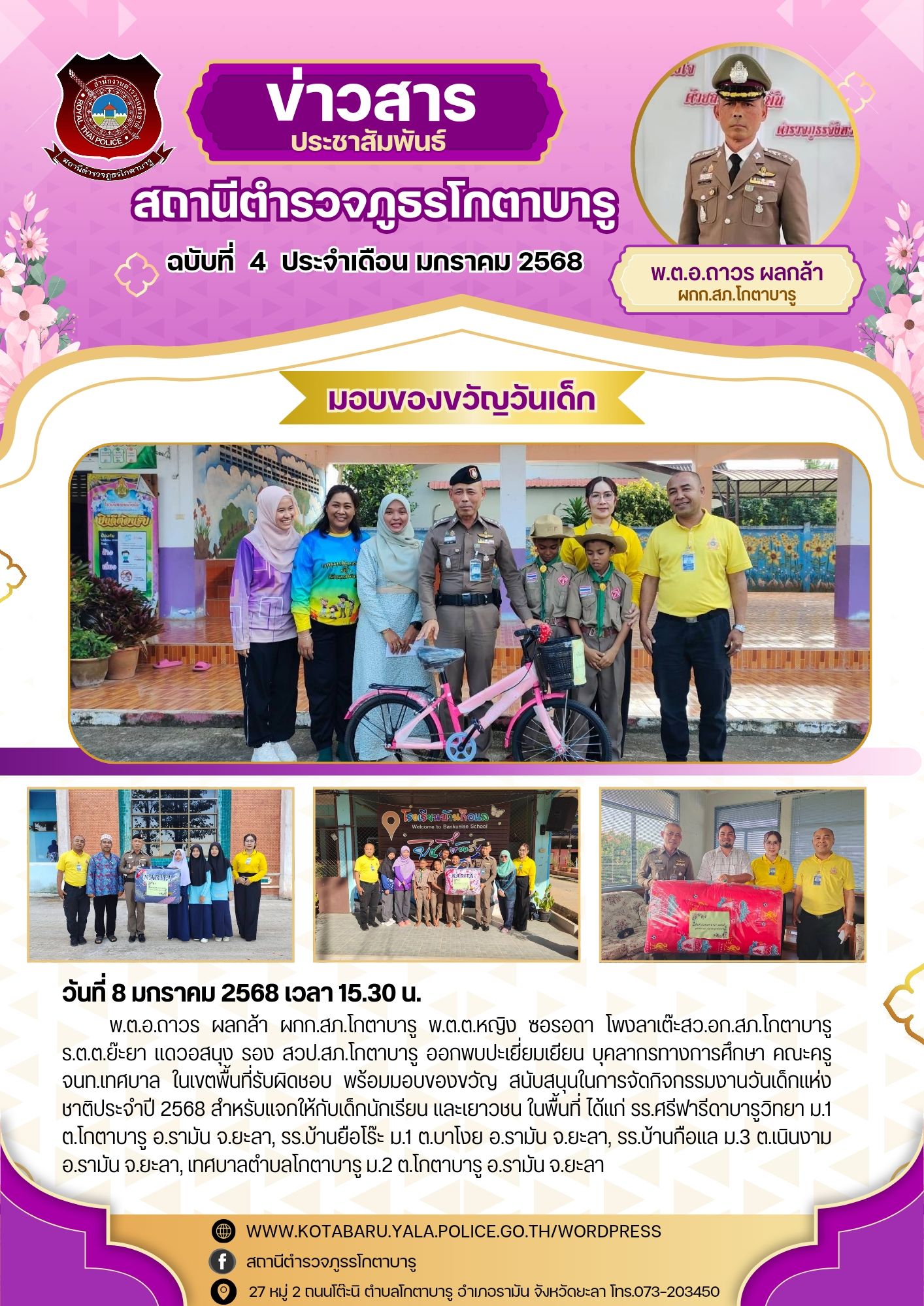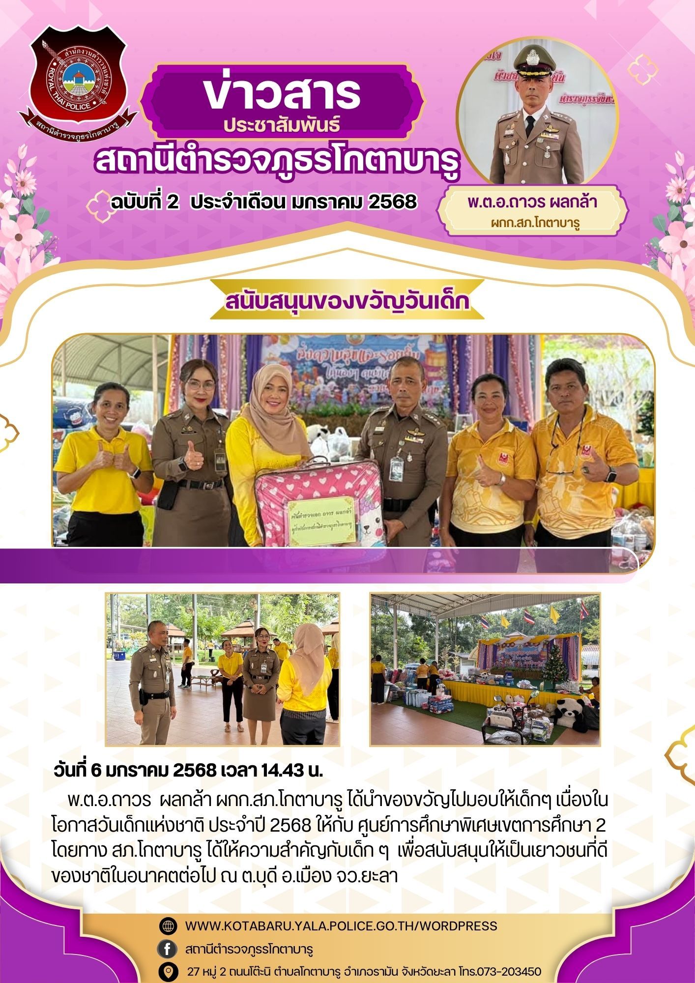 วันที่ 6 มกราคม 2568 เวลา 14.43 น.พ.ต.อ.ถาวร ผลกล้า ผกก.สภ.โกตาบารู ได้นำของขวัญไปมอบให้เด็กๆ เนื่อง