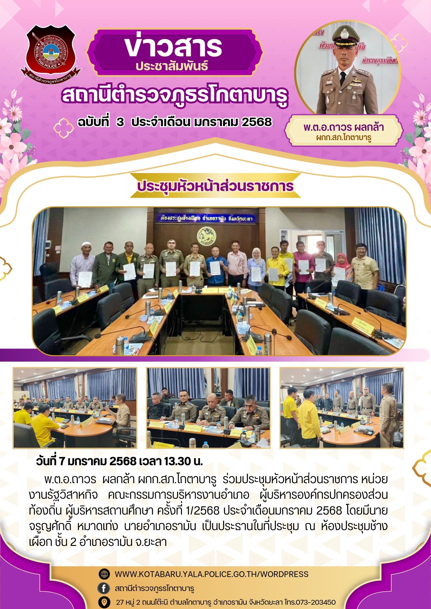วันที่ 7 มกราคม 2567 เวลา 13.30 น. พ.ต.อ.ถาวร ผลกล้า ผกก.สภ.โกตาบารู ร่วมประชุมหัวหน้าส่วนราชการ หน่