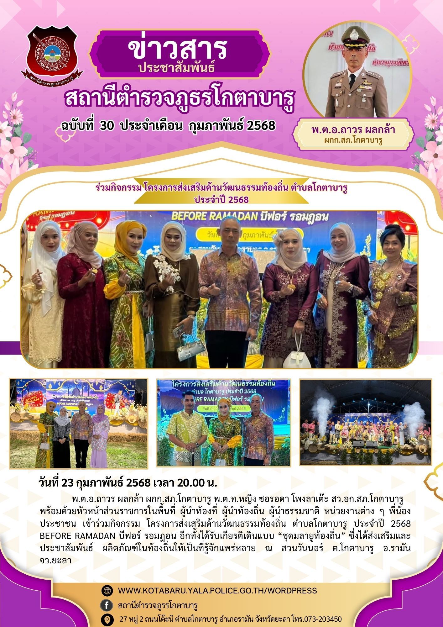วันที่ 21 กุมภาพันธ์ 2568เวลา 10.00 น. พ.ต.อ.ถาวร ผลกล้า ผกก.สภ.โกตาบารู พร้อมข้าราชการตำรวจ ร่วมพิธ