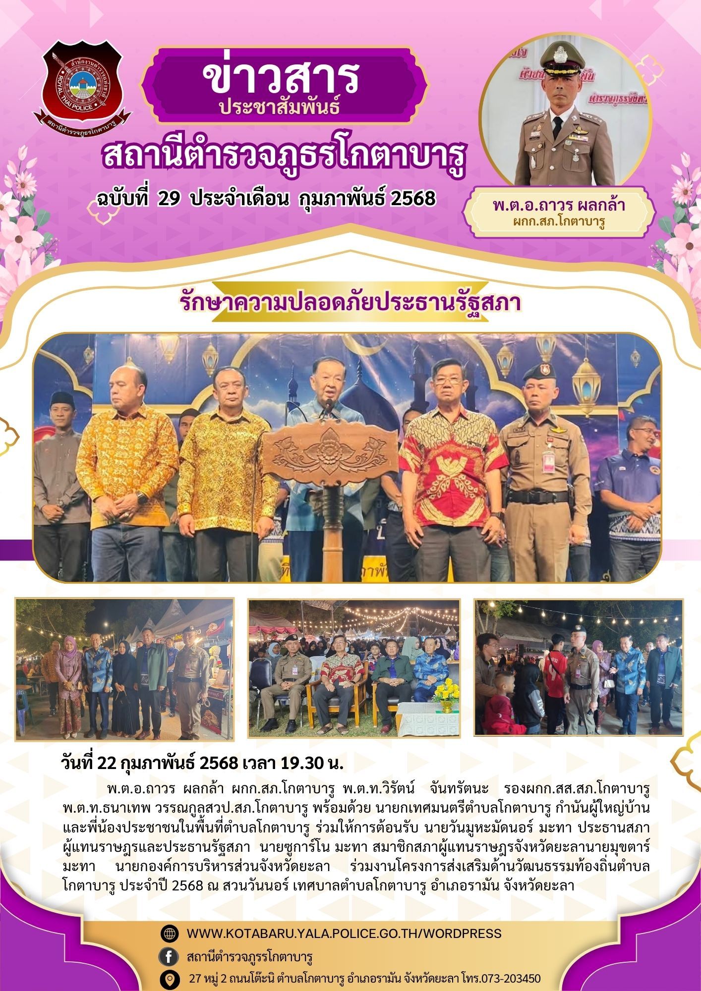 วันที่ 22 กุมภาพันธ์ 2568 เวลา 19.30 น. พ.ต.อ.ถาวร ผลกล้า ผกก.สภ.โกตาบารู พ.ต.ท.วิรัตน์ จันทรัตนะ รอ