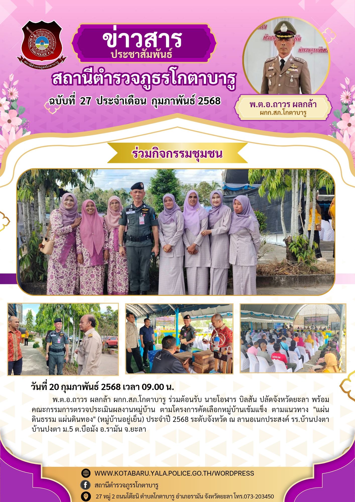 วันที่ 27 กุมภาพันธ์ 2568 เวลา 09.35 น. พ.ต.อ.ถาวร ผลกล้า ผกก.สภ.โกตาบารู ว่าที่ พ.ต.ท.หญิงซอรอดา โพ