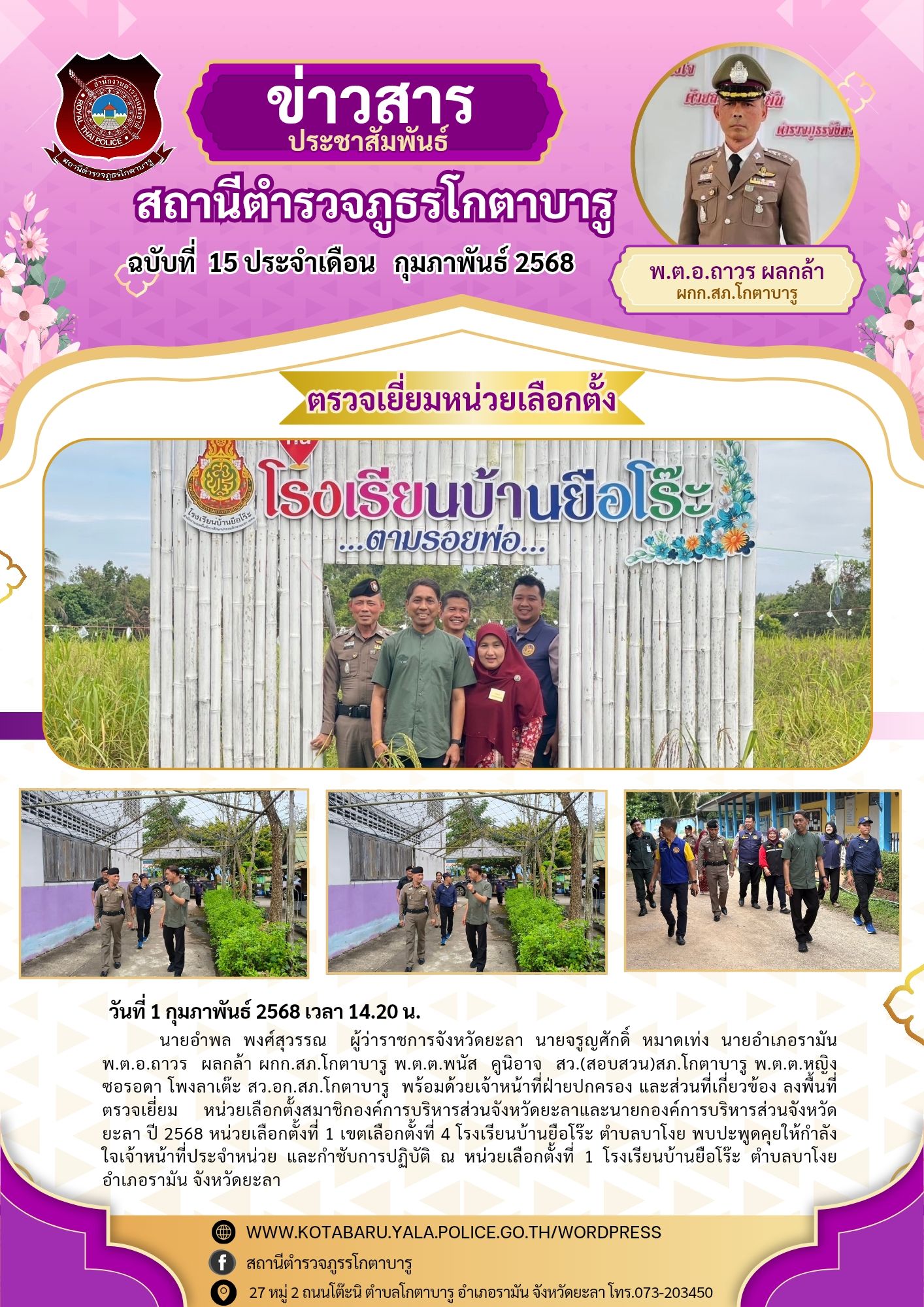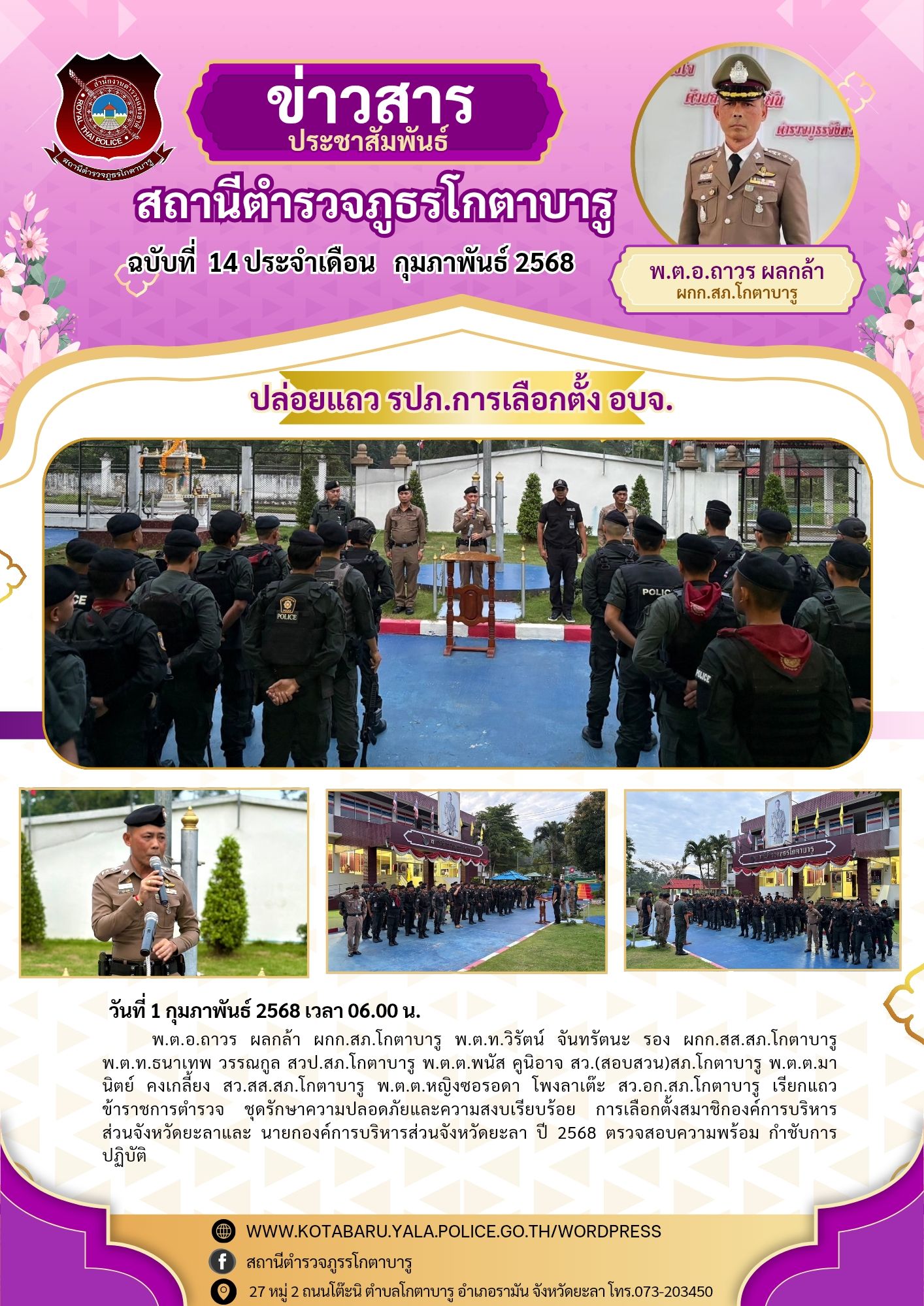วันที่ 1 กุมภาพันธ์ 2568 เวลา 06.00 น. พ.ต.อ.ถาวร ผลกล้า ผกก.สภ.โกตาบารู พ.ต.ท.วิรัตน์ จันทรัตนะ รอง