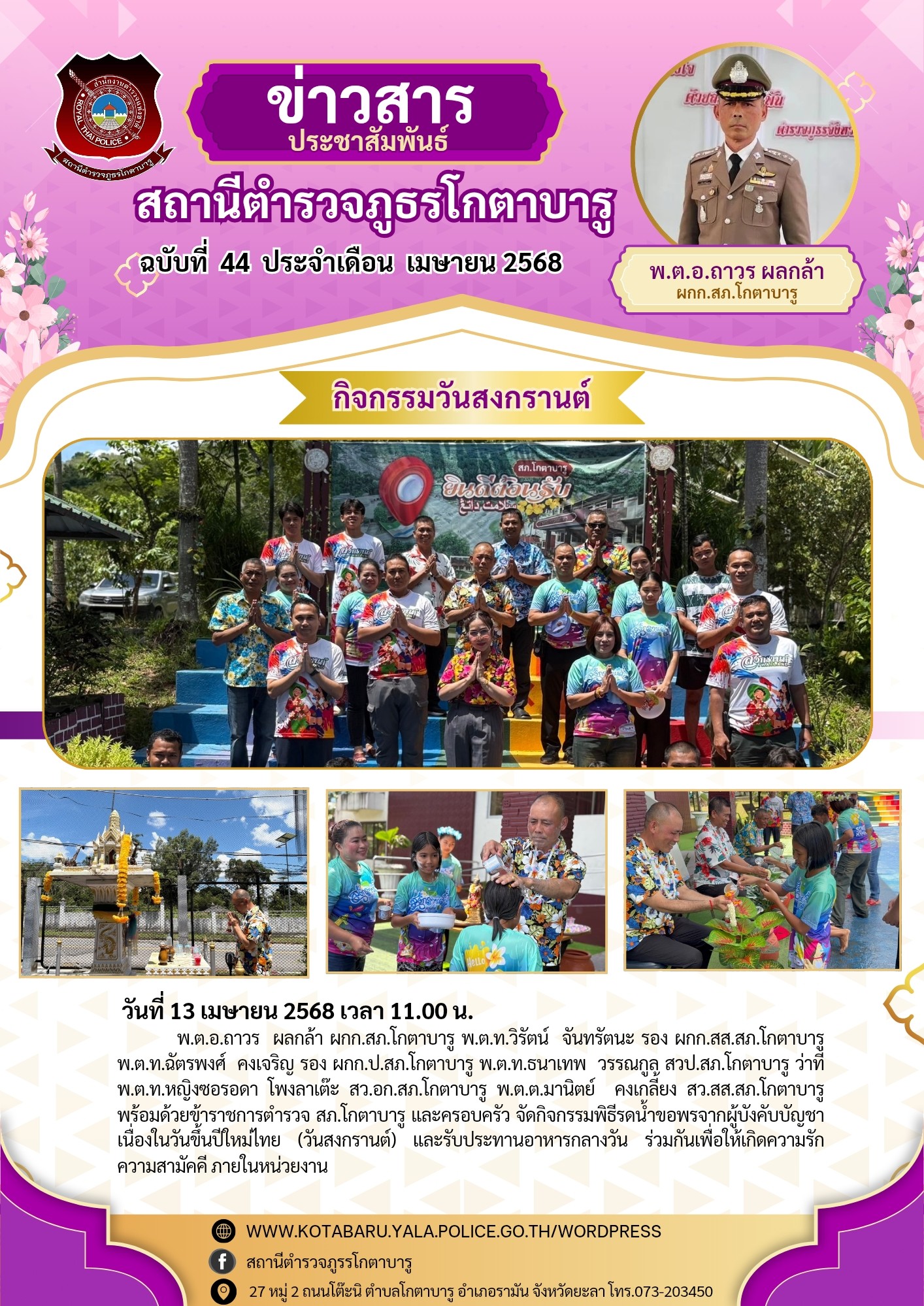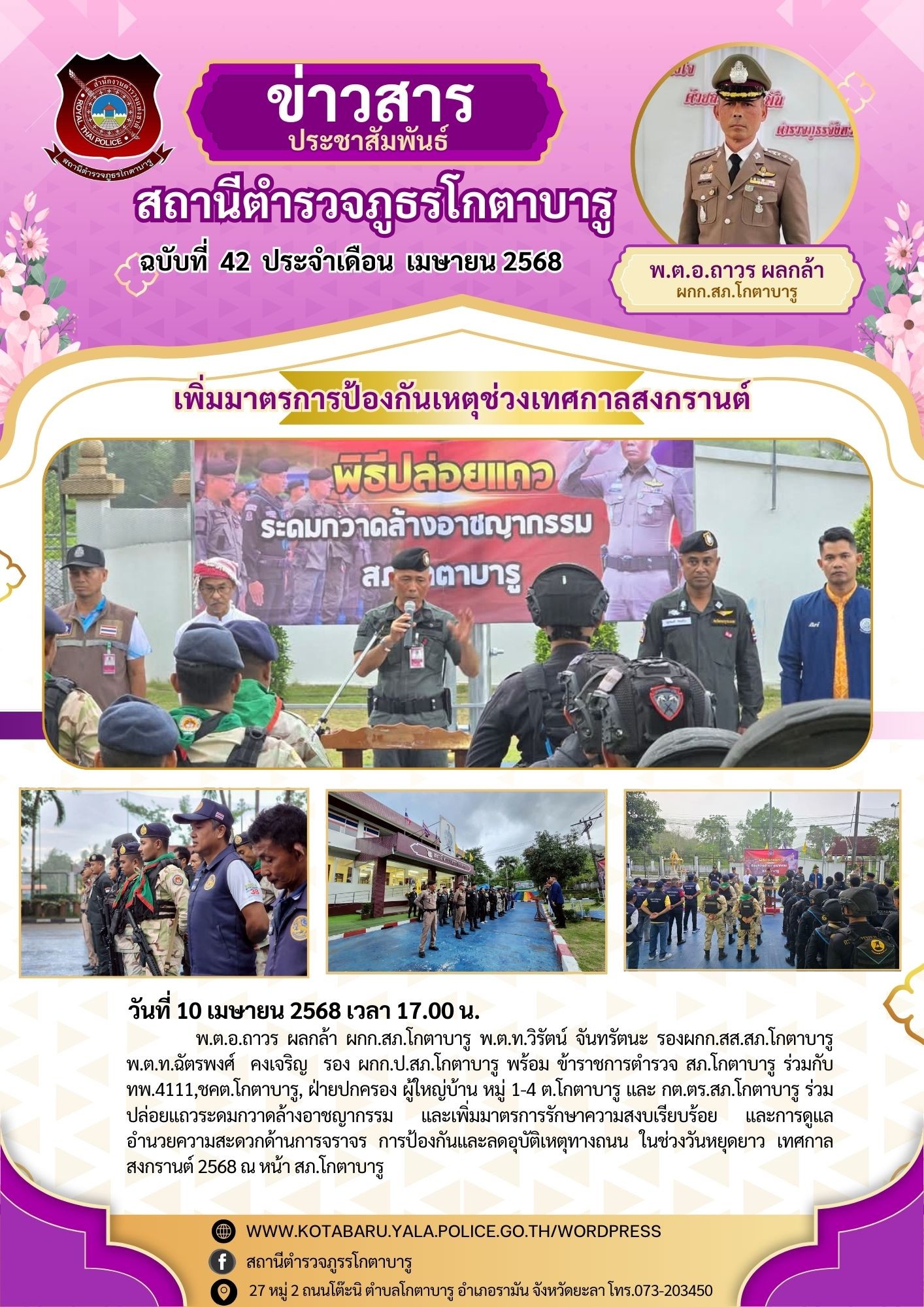 วันที่ 13 เมษายน 2568 เวลา 11.00 น. พ.ต.อ.ถาวร ผลกล้า ผกก.สภ.โกตาบารู พ.ต.ท.วิรัตน์ จันทรัตนะ รอง ผก