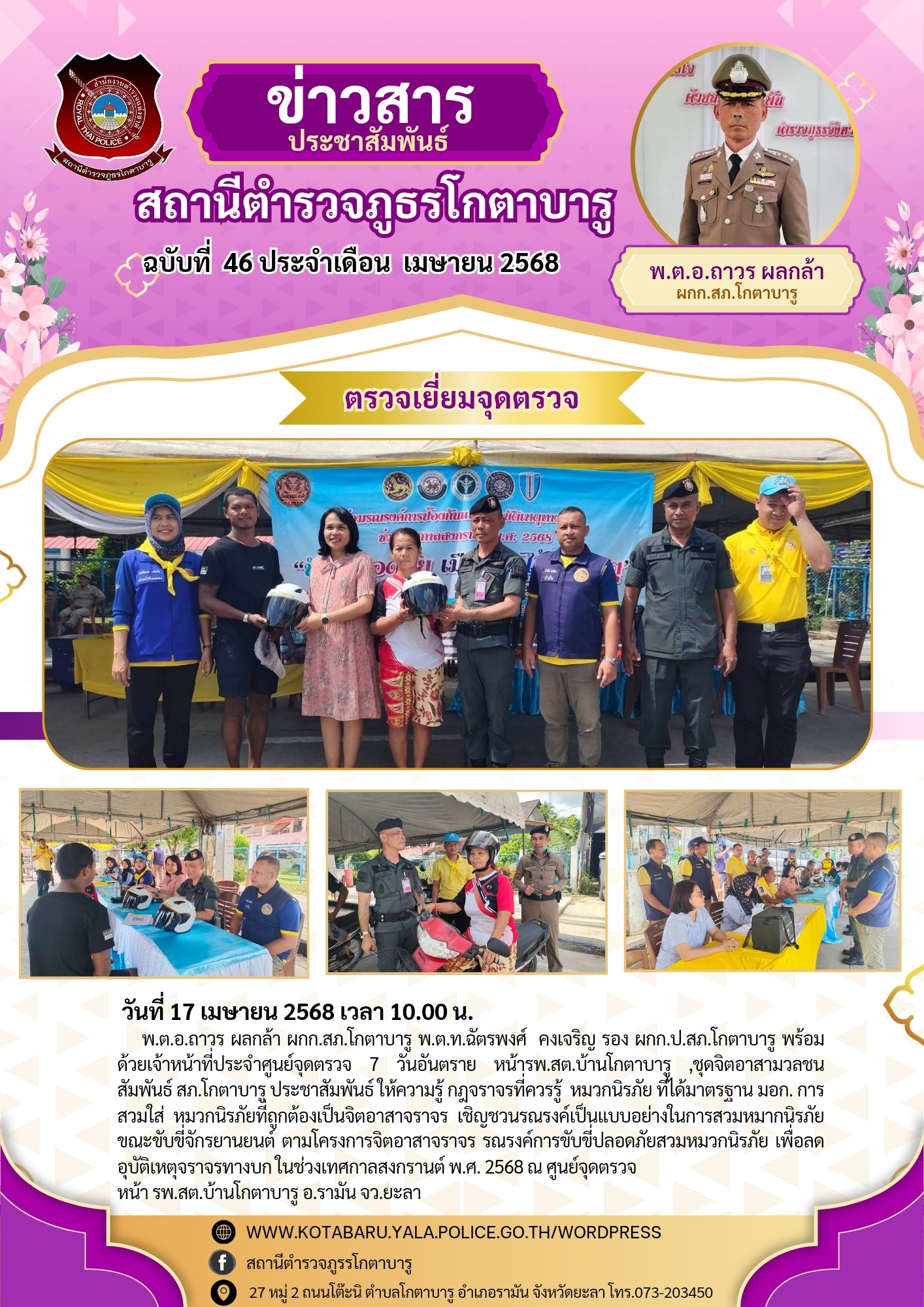 วันที่ 17 เม.ย.68 เวลา 10.00 น. พ.ต.อ.ถาวร ผลกล้า ผกก.สภ.โกตาบารู พ.ต.ท.ฉัตรพงศ์ คงเจริญ รอง ผกก.ป.ส