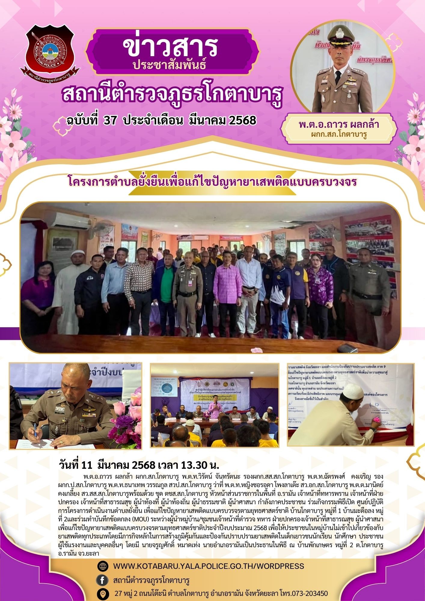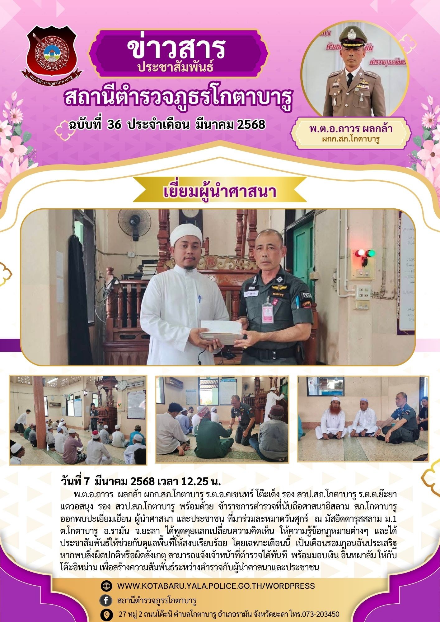 วันที่ 7 มีนาคม 2568 เวลา 09.00 น. พ.ต.อ.ถาวร ผลกล้า ผกก.สภ.โกตาบารู พ.ต.ท.วิรัตน์ จันทรัตนะรอง ผกก.